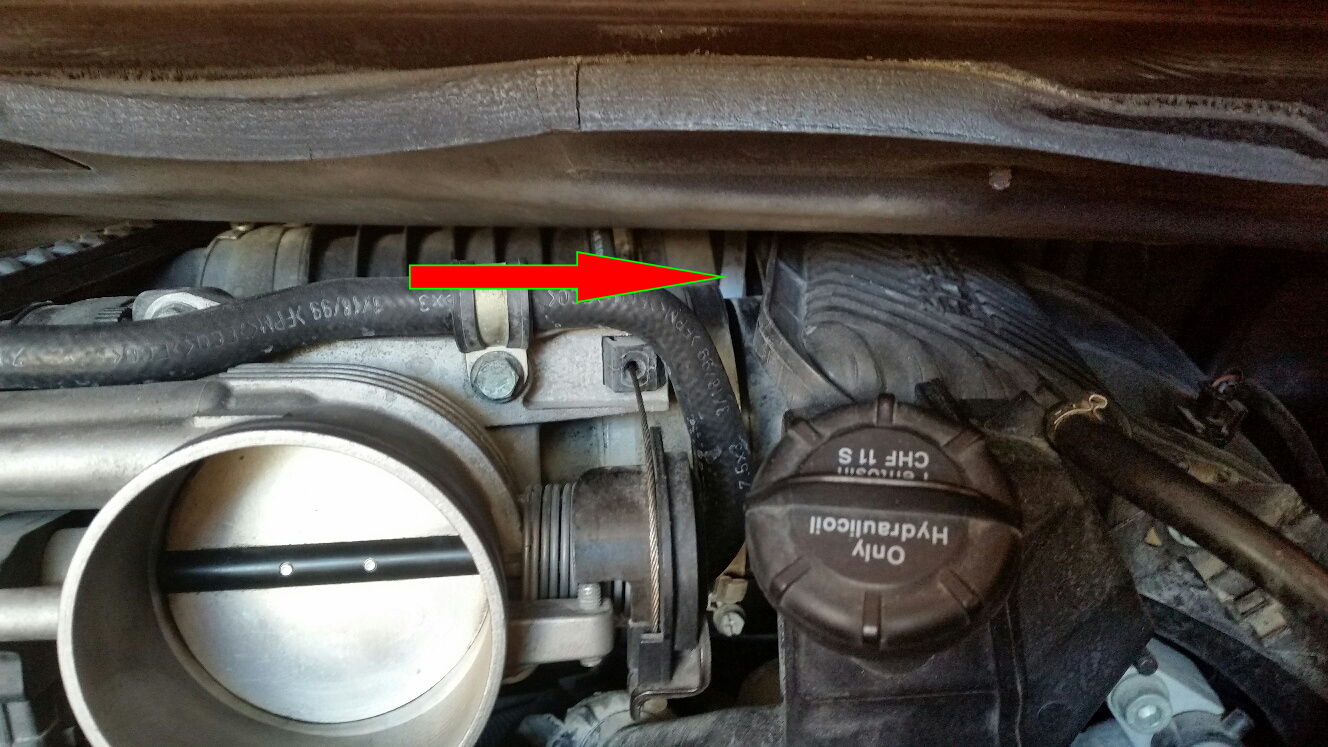 clamp was knocked askew (see photo). I'd like to gain access to the top of the engine area right above that plenum...