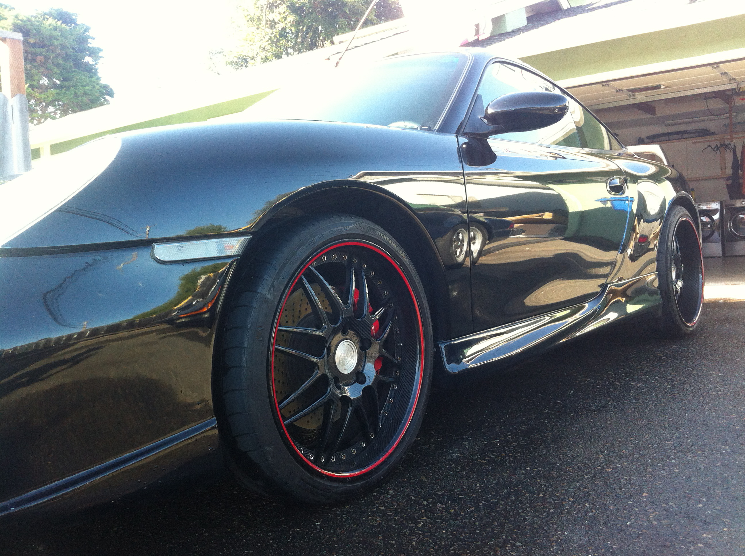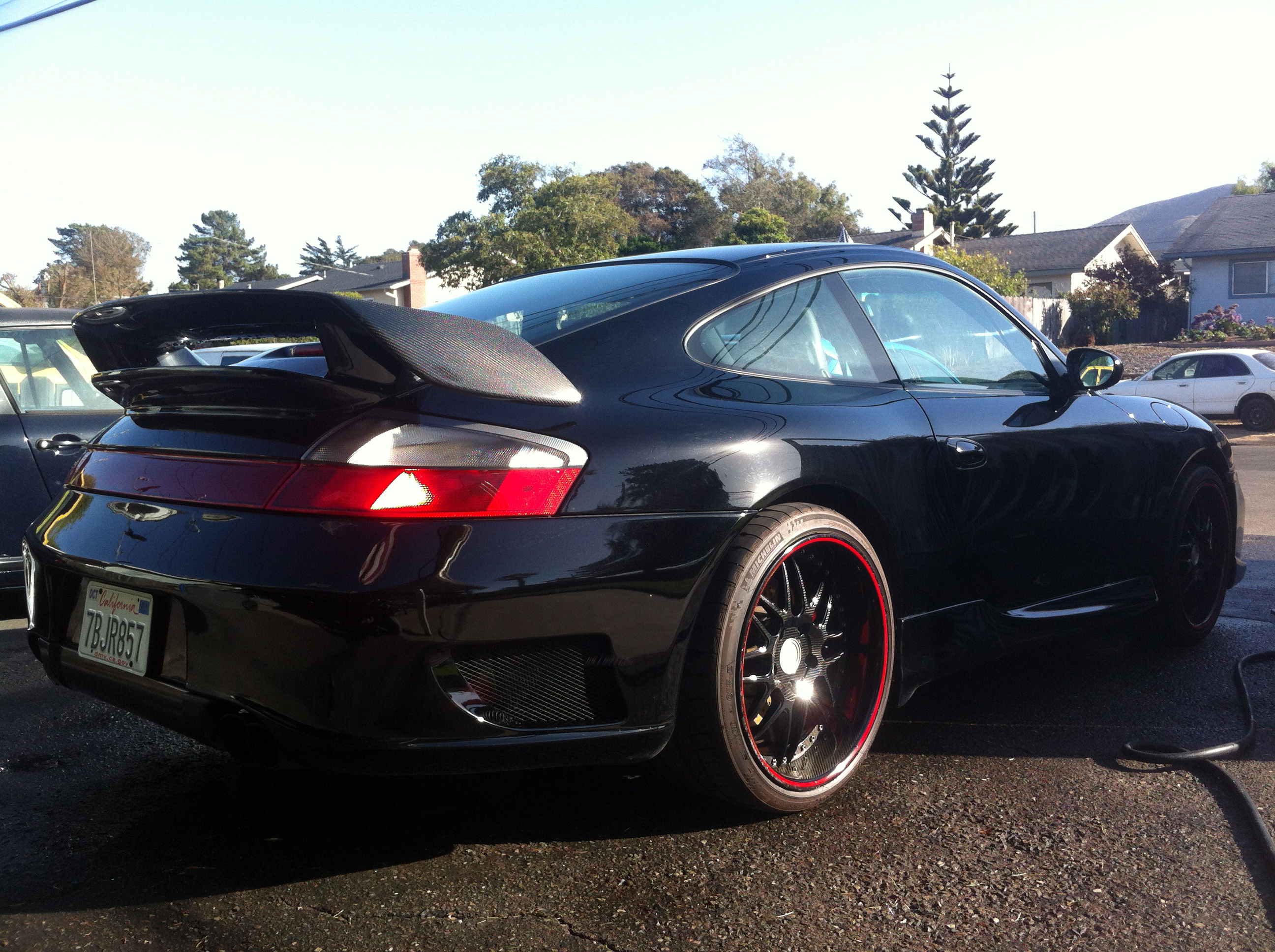 Unfortunately no, they were also installed by the previous owner. We've tried to figure out who made them since one of them is slightly damaged (just cosmestically, caused by a tire blowout on the way back from a car event), and had no luck. If anybody knows, I would really appreciate it. I don't have pics of the back but I have seen it when we had the one off for the blowout. All we know is that they are at least several years old, and were told they cost quite a bit, somewhere between 10-14k (and the cost they said for the bodykit is pretty accurate so I am inclined to believe it)