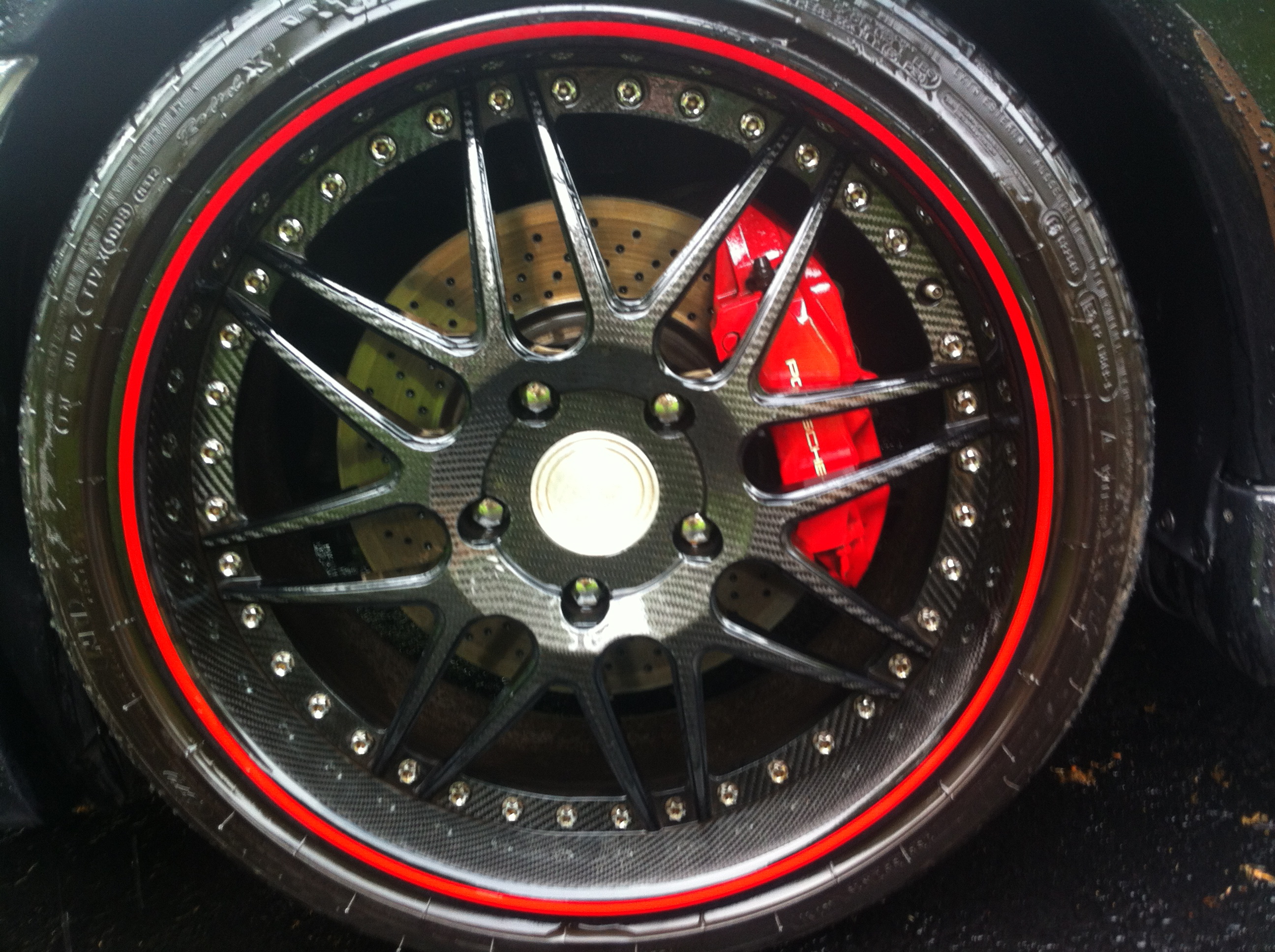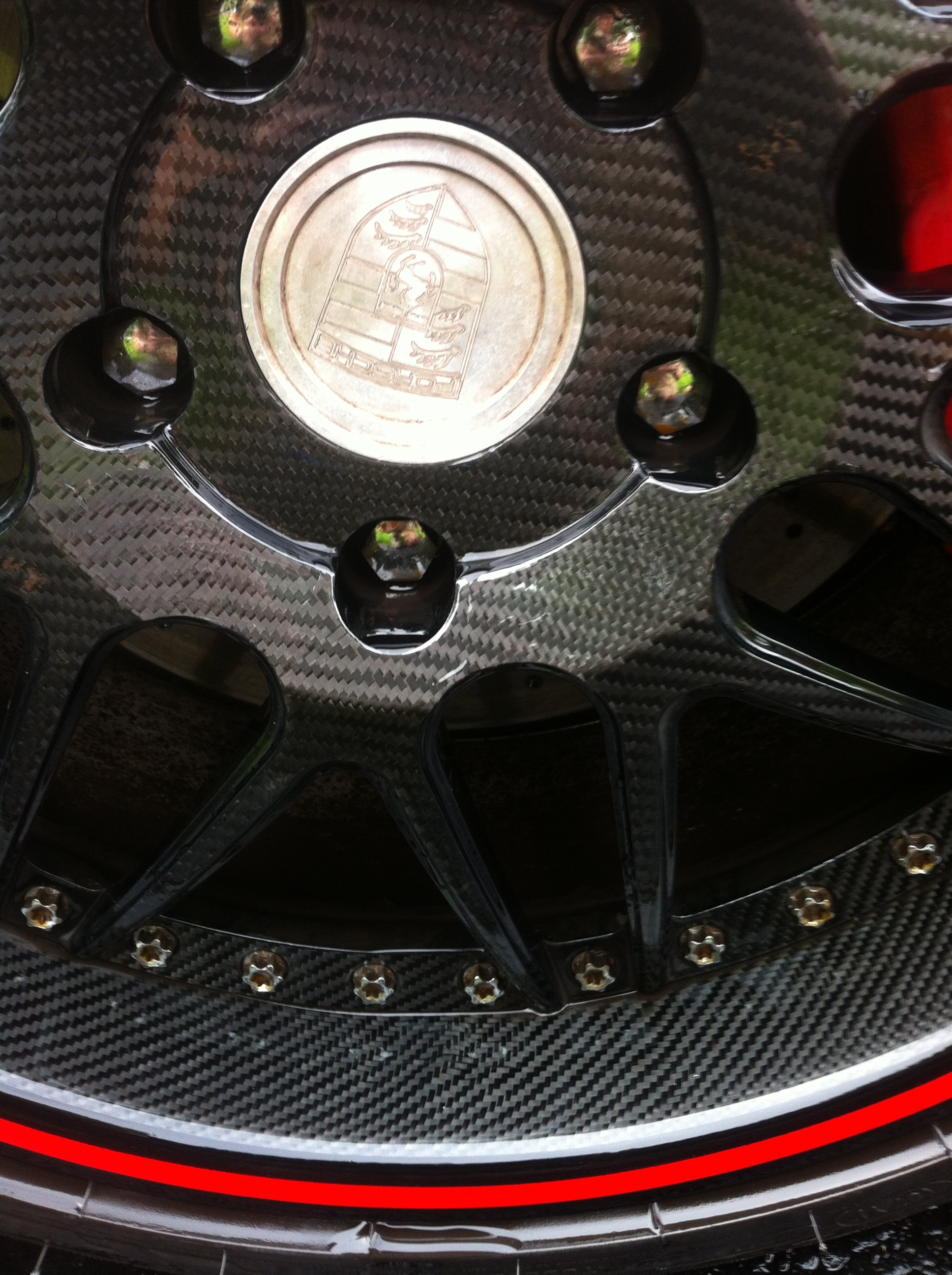 Actually they're multipiece wheels. The inside part that the tire surrounds, is metal, however the outer part where the spokes are is real carbon fiber.