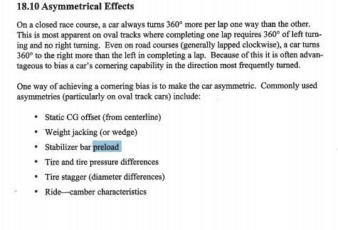 They mention road courses too, in the same paragraph. I simply included it as a for example sake for racers using sway bar preload to tune cross weight load transfer // corner balancing // making corrections to a steering behavior.