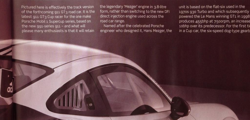 If you believe the rumors, the 991 Cups will be switching to a a new 3.8L from Porsche Motorsports. Not the Mezger, and not the 9A1, although apparently they've purchased enough GT1 blocks to support the Cup program for another 2 years.