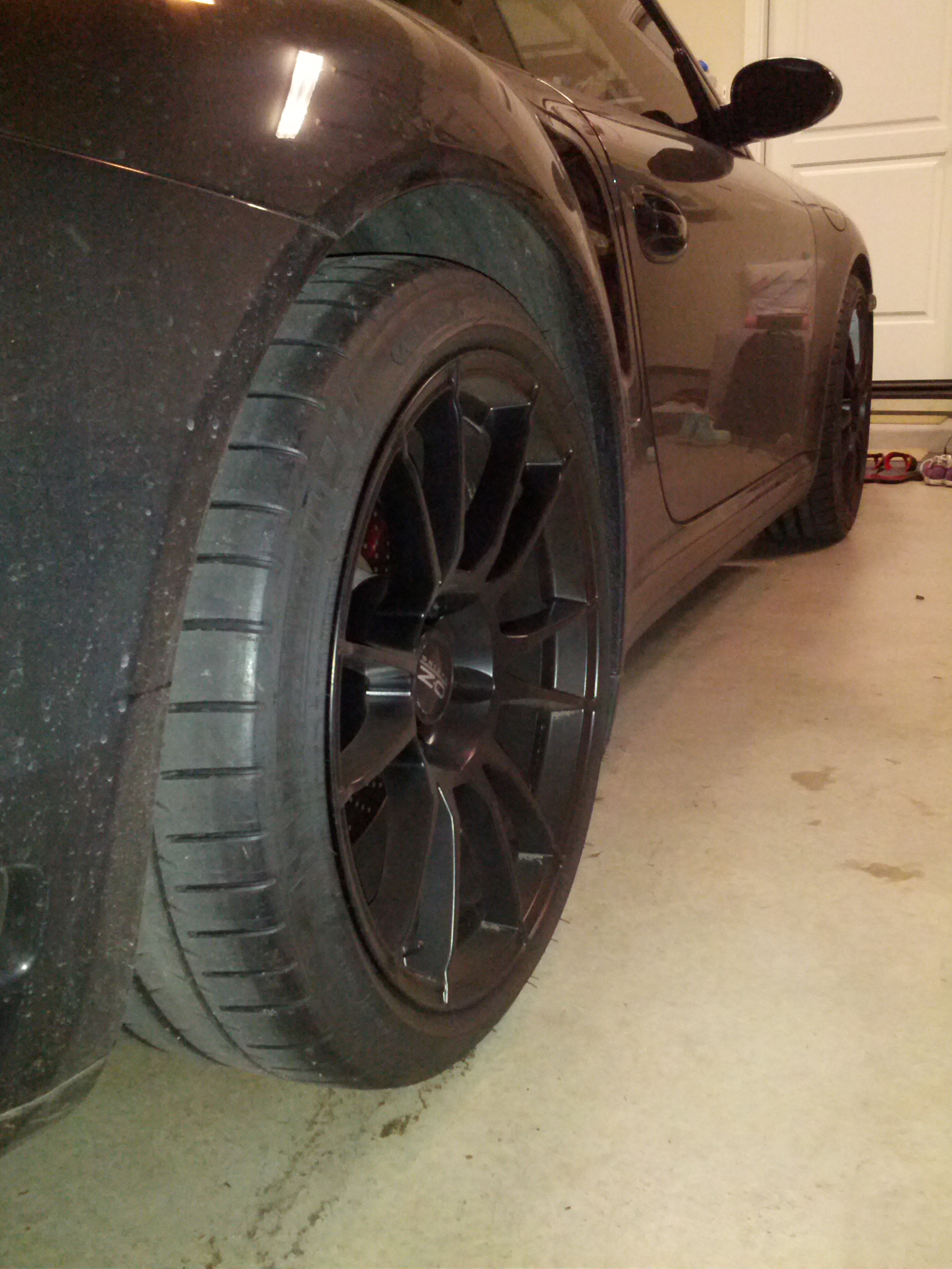 I have 20" rims that I just put 245/325 Pilot Super Sports on. Also just lowered with GMG springs/sways. No rubbing.