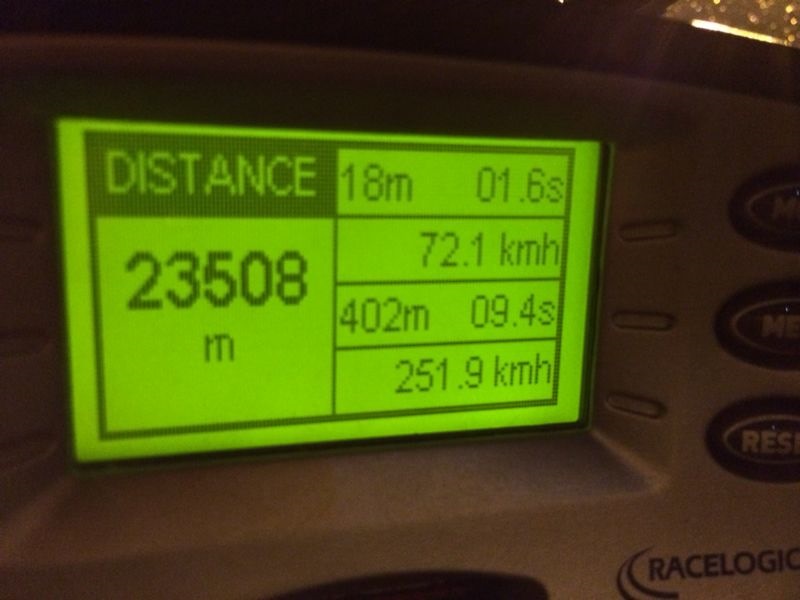 The first run, 1/4 mile 9.6@250 kmh