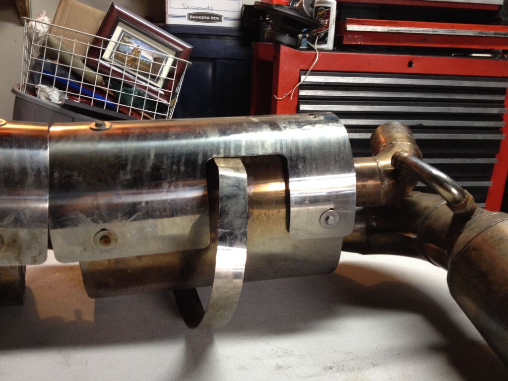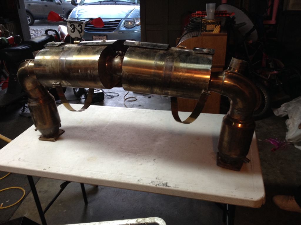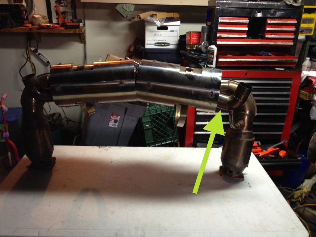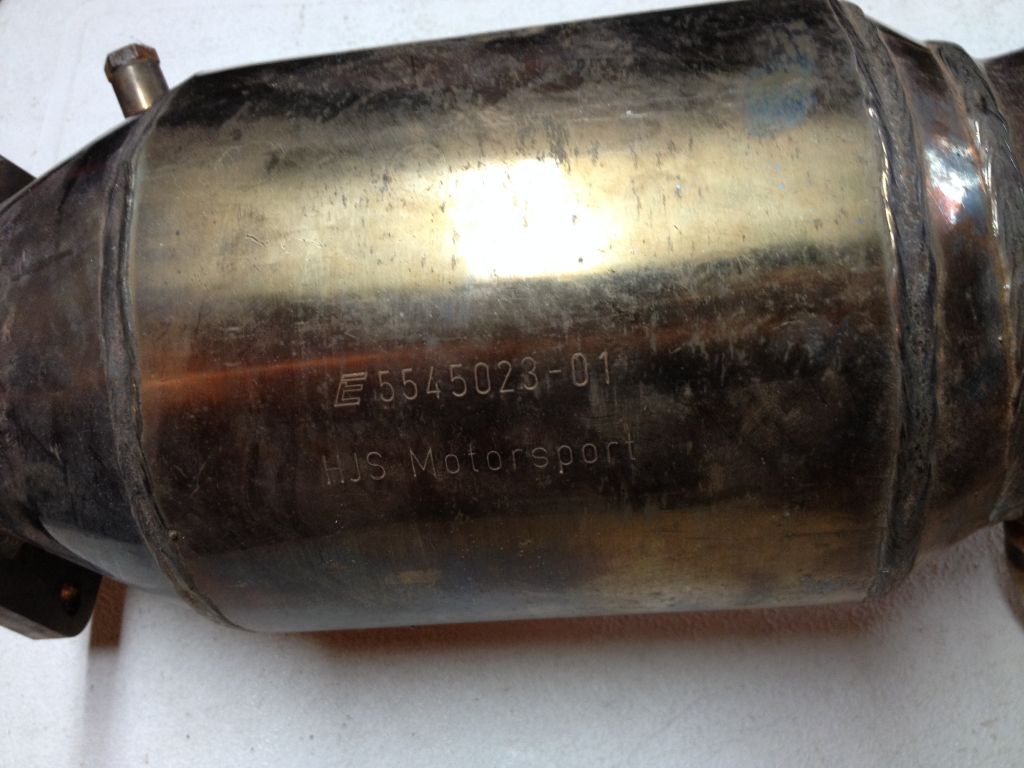 HJS cats are a plus, I guess. Hard to tell why there would be such a long pipe connected to the rear O2 sensor bung, this shouldn't be needed. Cargraphic welds ID plates to the bottom of the mufflers.