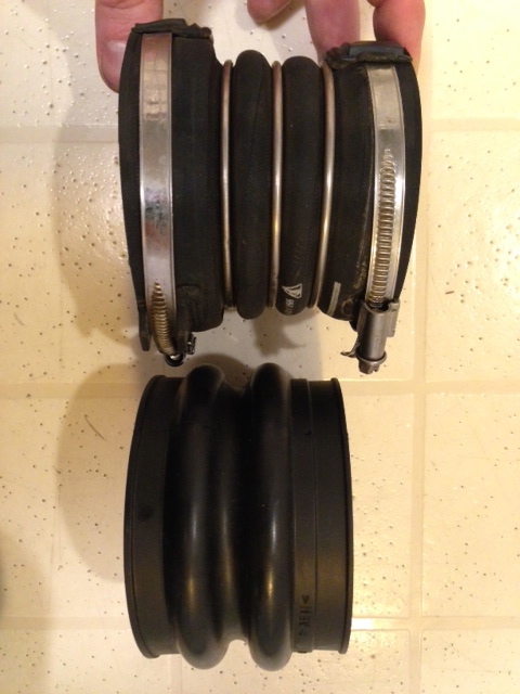 Here is a pic of the GT3 hose next to the stock 997.1 hose below. I am thinking of locating a silicone hose but like the OEM hose as it has the ridges that lock it in place.