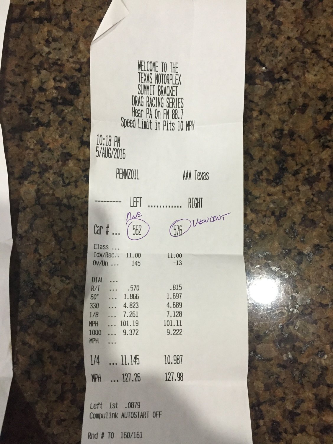Of course I would be happy to help out. As you know these cars launch well, but when power is increased you will also need better rubber to get the power down. And with better DA you should go much quicker with your current setup. I'm guessing high 10's at near 130 just by waiting a couple months.
