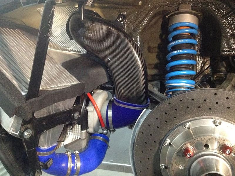 - OTS Garret/PTE/XR: more affordable than the Alpha units, more size options. 4" comp intake flanges will not work with the Do88 style intakes, your options here are fenderwells/ direct filters/ ESM 4" intake that uses a modified stock air box (best solution, only one if you have carbon shrouds, $$$). Oil drip pan needs minor modifying and new bolts to bolt on to the garretts, Xona have 2 bolt patterns, PTE needs an adapter. Tial 0.63 turbine housing clears the pan, 0.82 housing needs a spacer, if the spacer is too long the hard lines connected to the pan will need to be converted to AN braided lines. The tial Vband housing will offset the exhaust flange about 1/2" to the front, so your exhaust will need an extension. External gates and new headers or modifying the stock headers are extra expenses that makes this option more expensive overall compared to alphas. 2" comp housing outlet will work with oem size lower boost hoses, 2.5" outlets need new hoses or a chop and weld new 2" outlets.