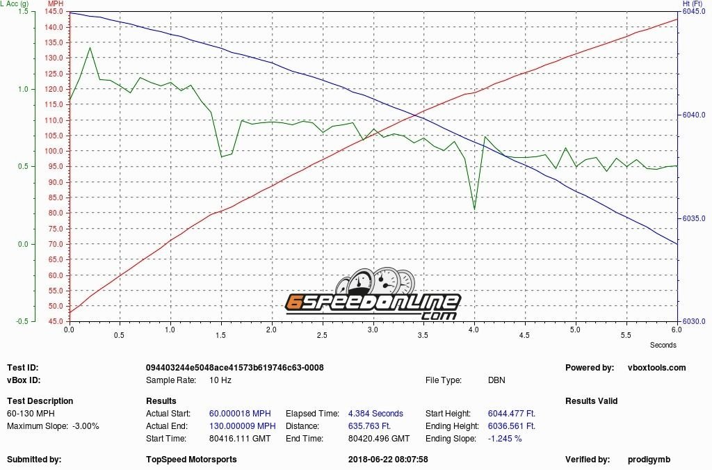 Ryan from AIM has improved the 60-130 in his infamous 996TT SpoolBus. It is now finally in the 3 second club. He actually sent both VBox and Dragy data, Congrats Ryan !