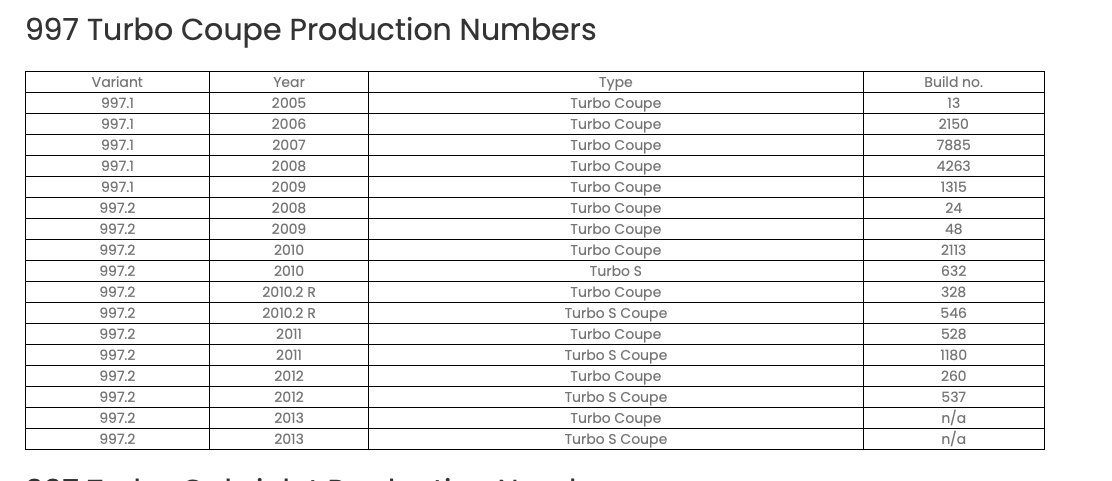 Cargurus is a pretty large used car website and when I look for 2010-2013 911 turbo cars only 6 of them pull up regardless of location. That's nationwide.