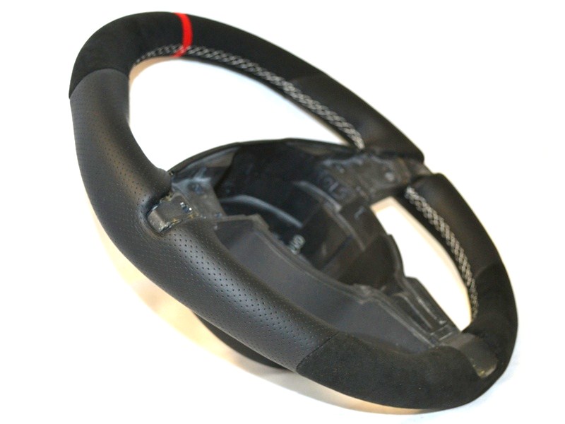 - Alcantara on top and bottom with RED alcantara ring on top