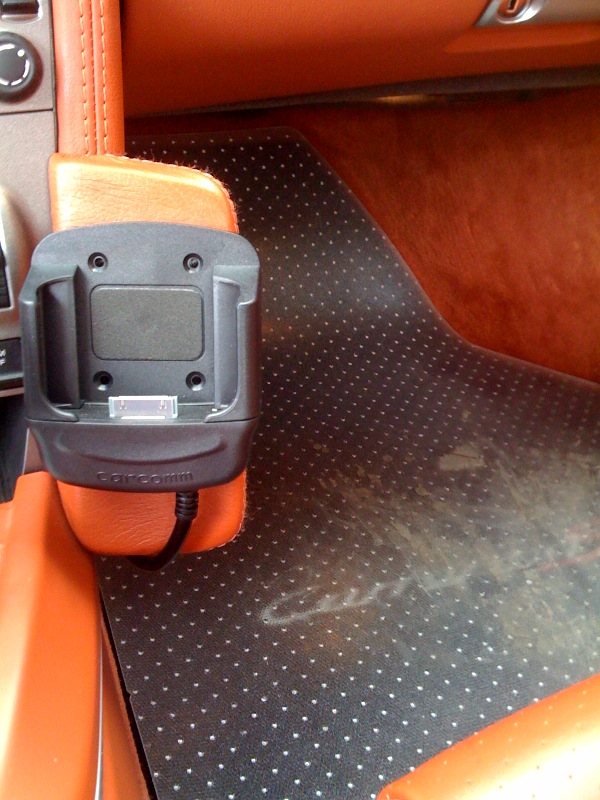 IF you are looking for a charging cradle, I bought a Carcomm iphone 3g cradle from Expansys-usa. I put a Kuda leather mount (they offer them in porsche interior colors). I was able to hide the cable behind the trim and plugged into accessory outlet in passenger footwell. Not hard-wired or integrated but clean stealthy look.