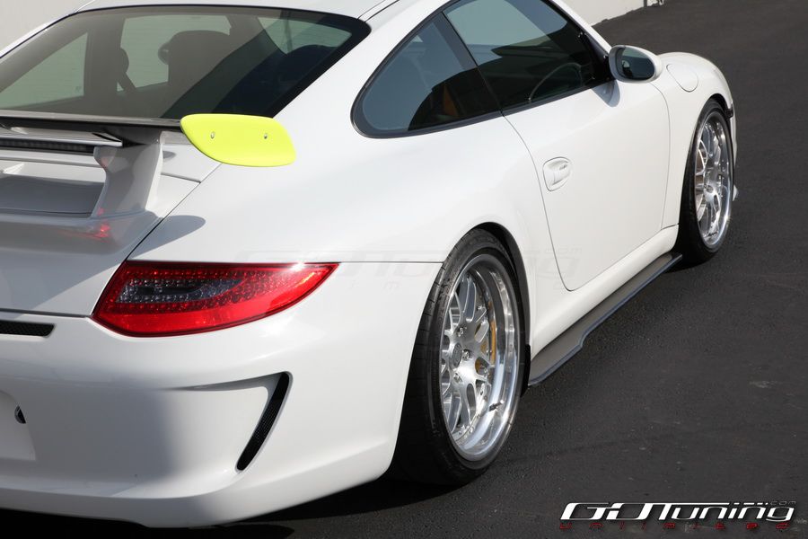 We’re proud to introduce the GT Design Porsche 997 Carbon Fiber Side Diffusers. Similar to custom side diffusers seen on Porsche Cup Cars, these side are a great aerodynamic and cosmetic addition to the side profile of any narrow body 997 Porsche. Based on aerodynamic theory, the side diffusers improve aerodynamic efficiency on the side of the car by smoothing out turbulent air generated by wider aftermarket wheels and tires and air coming out from underneath the car. The simple yet aggressive design only extends 1" past the outer most edge of the factory side for minimal obstruction but with the slope of the body the side diffuser gives the car a lower and wider look and also lines up with the outer edge of most aftermarket wheels for a matched appearance. The GT Design Side Diffusers were designed from scratch in-house from a blank slate specifically for the 997 body. They feature a shape contoured design to fit perfectly flush against the body for ease of alignment and installation without any measuring or guessing. The side diffusers install simply using one strip of double sided tape, used to prevent scratching the factory side skirt, and 3 small screws. Installation is completely reversible without leaving any visible damage behind. Use of factory jack points if retained and each side weighs 1 lbs.