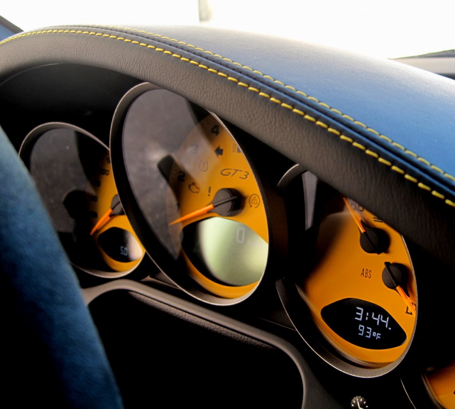 thought it'd interest all. photos of the speed-yellow dials on my 997.2 gt3.. I posted it on the GT3 section as well but I thought I'd put it up here, too, for the benefit of all 997 people and if anyone's trying to get an idea of how it'd look. I searched before I got my car delivered, didn't come across a lot of colored dials -- yellow or not. May be I didn't search well though.. ;-)