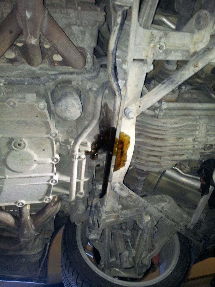 Below there are 3 pics of car on the elevator. As you can see there are 2 leak spots. Since I can't get to my indy till tomorrow I would apreciate any opinion based on pics and my description.