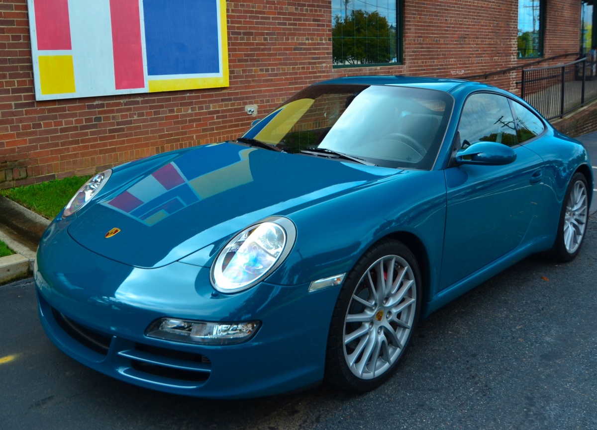 Ok, here is the sister car to mine in bright sun. This photo makes the color look more green than it actually is. The real color is somewhat in between. Not sure why we can't get it right. I've also included a pic of a vintage Porsche in Murano Green. Thanks to Edgy for originally posting this photo a few years ago, when my car was for sale new.