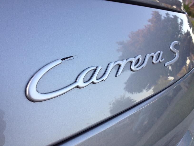 Ether the 911 badge or the carrera badge with the 4S, S in red.... or better yet, debadge it...