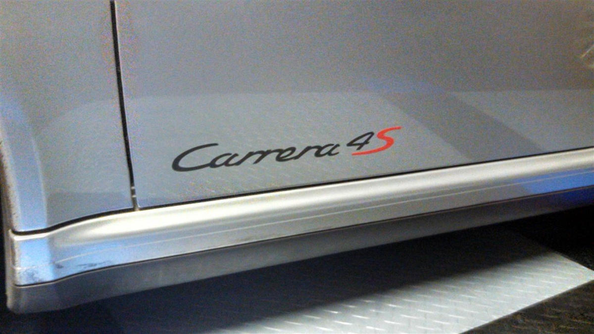 I used a template from Suncoast for the Carrera 4S and had them copy the script and duplicate it. Had the "S" done in Red. Goes on the same as OEM sticker. I measured out 1-3/4" from door to the letter C and 1-5/8" from the bottom of the door to the bottom of the script.