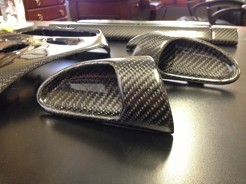 My new pieces from the DB carbon group buy finally came in and I am very impressed with the cleanliness of their carbon weave, the use of OEM parts, the price and the fact that I don't have to turn in any cores. I am going to install the Carbon Fiber Map light, door handles, cupholders and trim pieces.