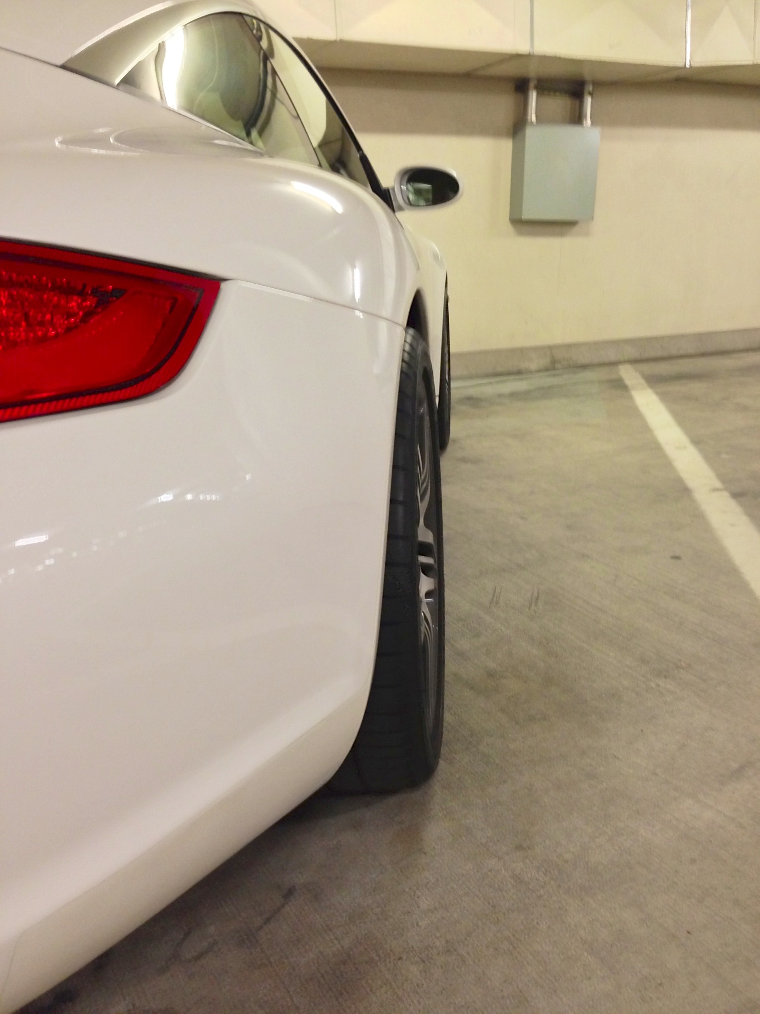 The last picture of the rear tire may appear its sticking out of the fender excessively but its not at all - its just the angle of the picture. You can see from the first and second pics the rear tires looks flush with the fender but its actually 1/2 inch inward from the farthest point on the rear fender.