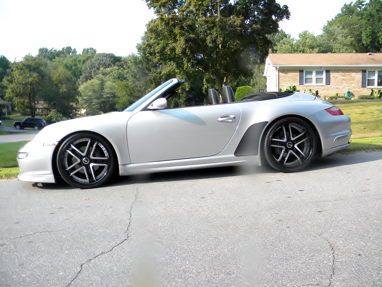 Thanks. Here is a profile pic. Actually with the lip, and GT2 side skirts it looks pretty balanced. I like the lip with the black stone guard because it gives it that Speedster look and if you look at the rear I left the bumperettes black for the contrast and the nostalgic look. Just me. But, I am leaning towards the GT2 front because it would complete a factory OEM package, and I think the GT2 front black contrast on top grille of bumper and the lower lip would set off the cars color combination.