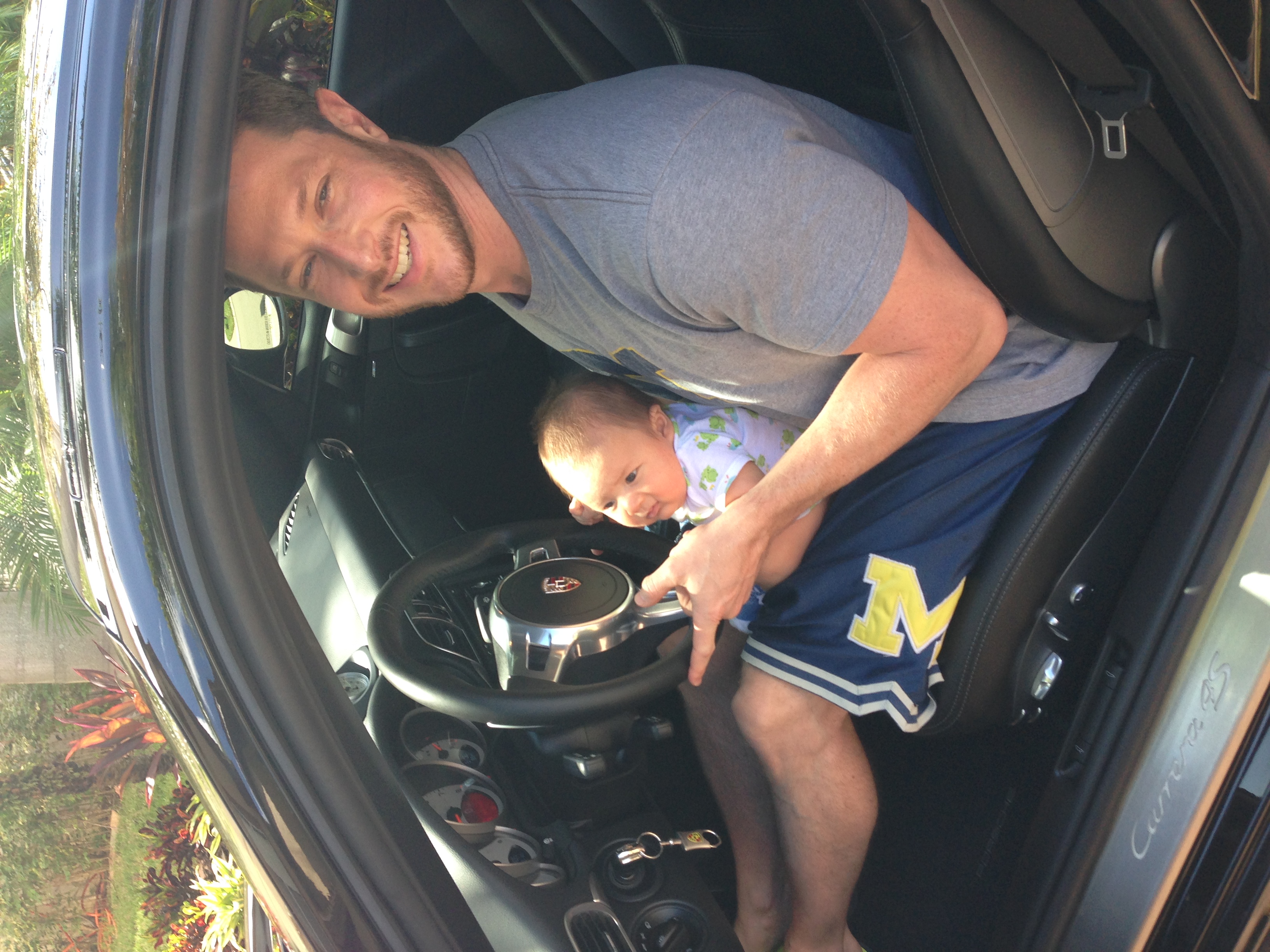 A couple of pics in the garage prior to the red 'S,' a picture of the new and improved 'S,' and most importantly a picture of me showing my 8 week old son what's it's like to sit in the driver's seat of a Porsche.