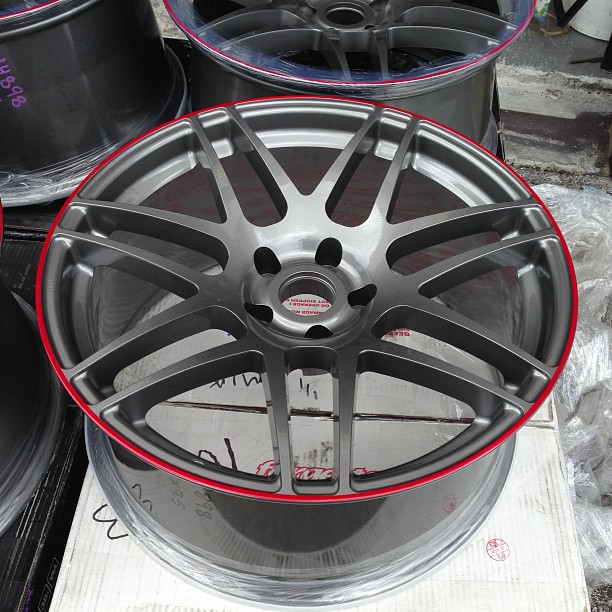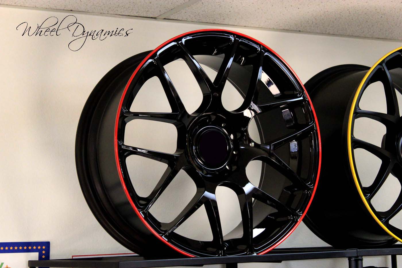 I'm leaning pretty heavy on gloss black. I have red calipers behind the wheel to help break up the black. I'm trying to decide if it makes sense to consider a pinstripe or not? Below is a red pinstripe on a gray FY14 wheel for example. Mine would be black and red similar to the other wheel example. I was talking to Eli at Wheel Dynamics who is refinishing my wheels. He also thought a polished or brushed stripe would also be nice. Can't decide if I want a pinstripe or keep it all black like the photo below?