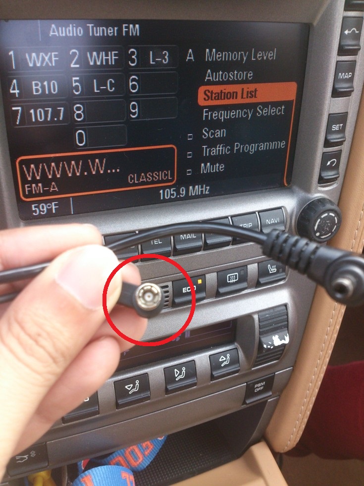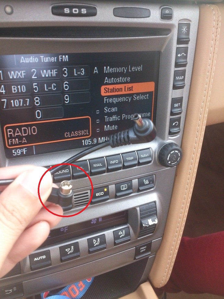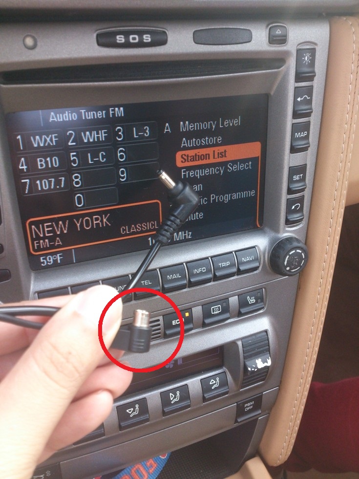 I found these cables coming from under the dashboard in a 997 from the passenger side footwell. The non-circled one looks to be a charger for a phone (old one) or a bluetooth kit or whatever - it came from the 12v socket in the passenger footwell.