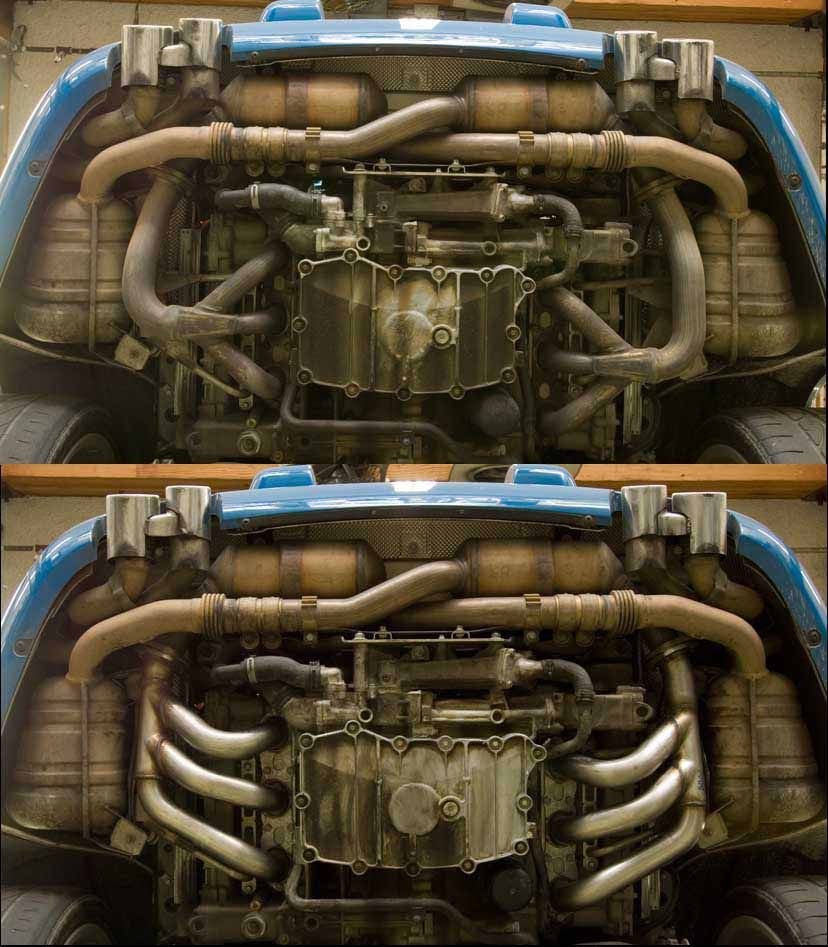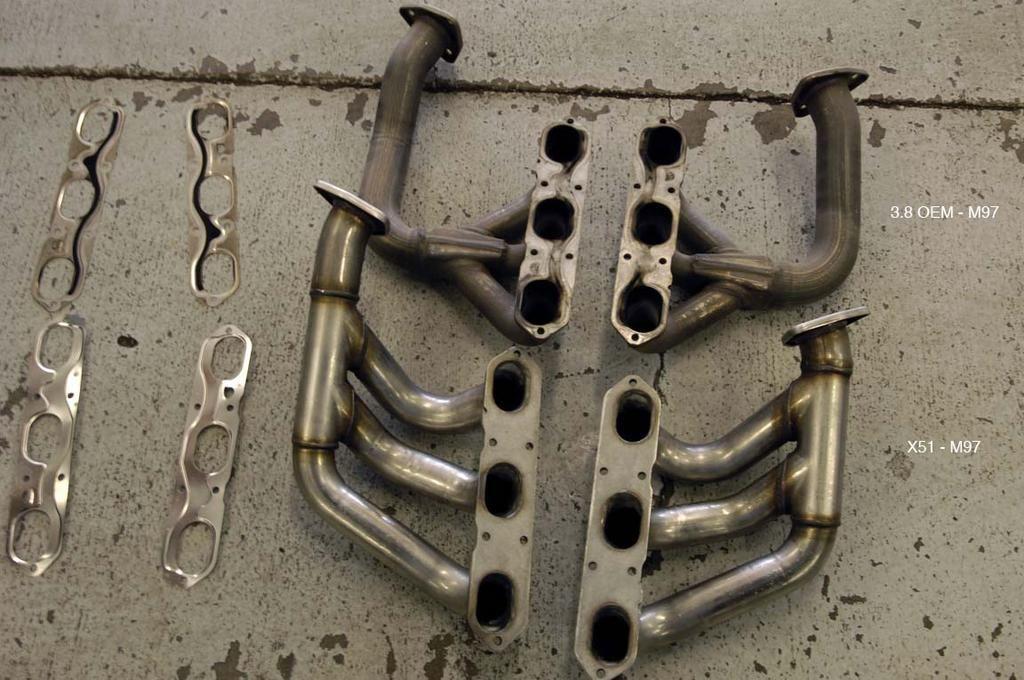 M97 (3.8l S models) headers are in the top picture as indicated. The M96 (3.6l) headers are in the bottom picture. The M96 headers and the X51 headers look the same but X51 has 48mm tubes and M96 has 42mm tubes.