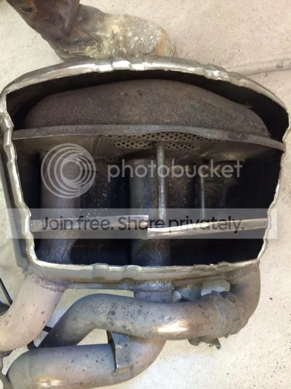 2. Open up the backbox like a can of beans and its easy to spot the source of the rattle! Broken baffle.