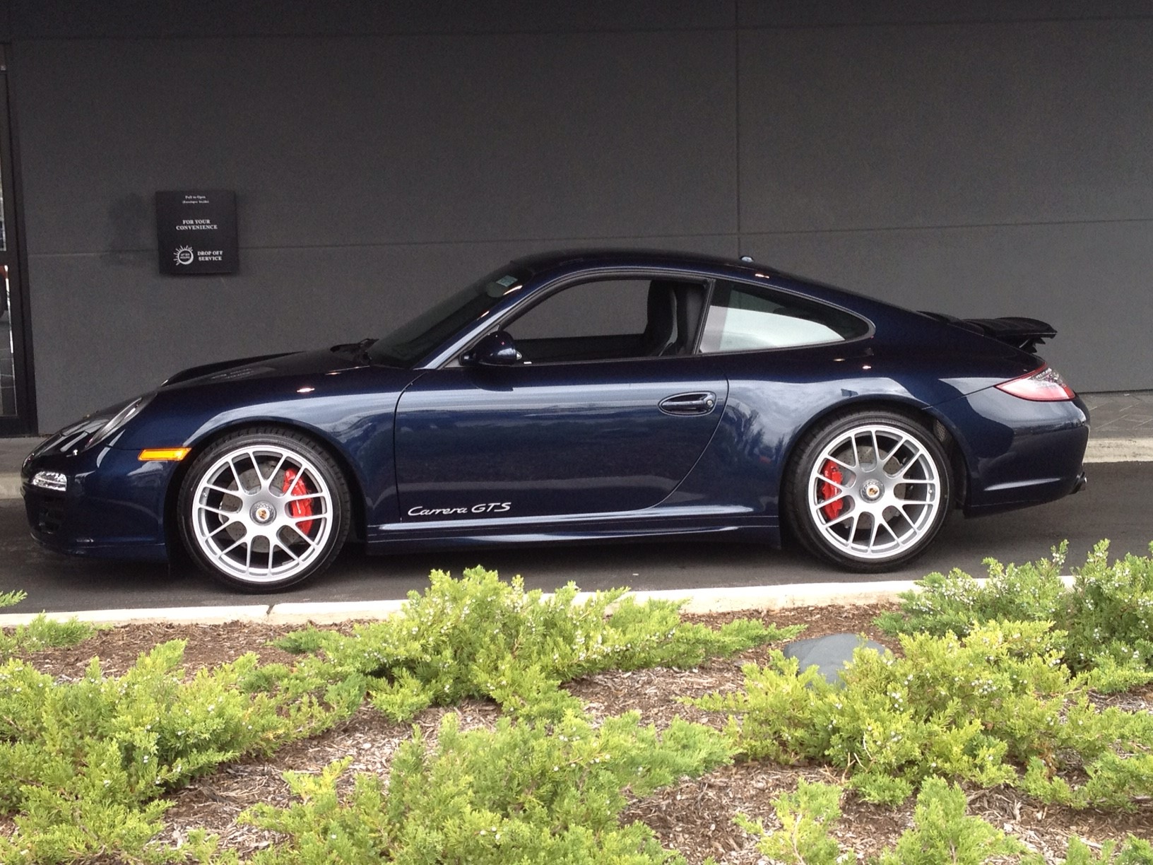 I love the silver wheels on your dark blue GTS, at least I think it is dark blue. I prefer the clean look also with no wings.