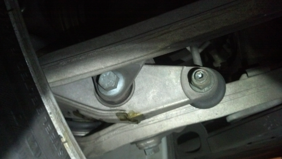 I noticed a small drip on the garage floor tonight. I crawled under and saw some fluid pooled on the metal part in the photo of the drivers side rear wheel. You can see the tire in the shot.