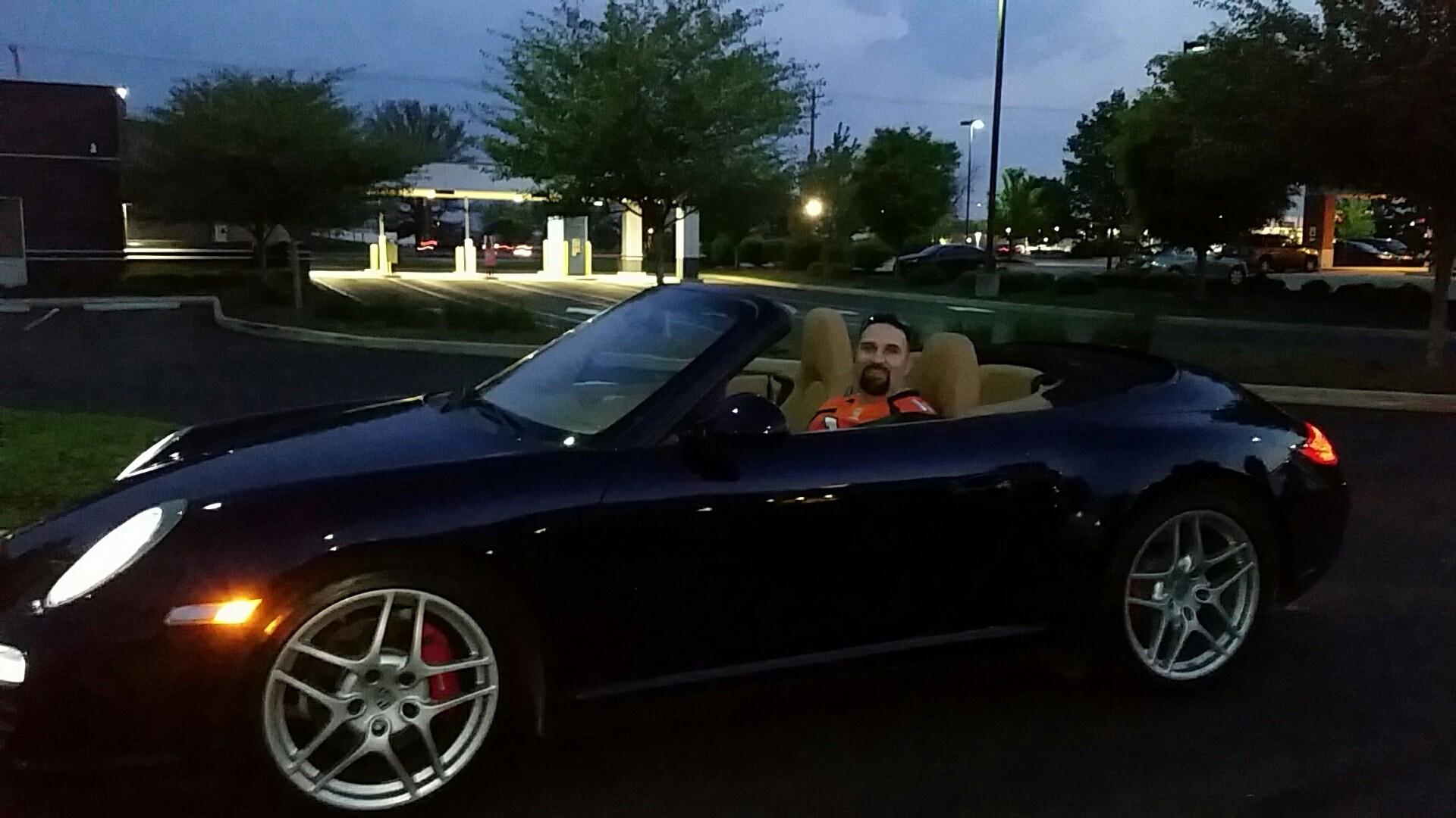 Hello all Im new to the forum and by new I mean I joined about a week ago. Im super excited to say ive finally taken ownership of my first 911 last night. Like so many have always wanted one, I too have always wanted one since childhood. In my 20s I started out with a 300zx from there and years later to the 350z. With a better job intact I then moved up to a 2 year old 98 vette that turned into a new 06 vette. Then to my srt-10 which I loved but put 3400 miles on in 5 years. Ended up selling my toys and felt empty for about 2 years. but knowing I needed a rocket strapped to my ***, And have always had that need for speed mentality I wanted some thing different. Always wanting the Porsche so I started to entertain the idea of owning one. But I have a particular look that I had to have. So the wide body was a given, a must have. I've always liked the mid 90s body style, but I prefer new over old so I knew it was going to be a newer vehicle although brand new was out of the question. And with all the oil seals/bearing issues of the 05-08 I opted for the 09 or newer(pertaining to the 3.8L im not sure of the other 2 engines if they had similar issues). But I wanted the one with the most HP available which was the 3.8L(wasn't looking at the GTs or the turbos). So I zeroed in on the 09-11 C4S 911s. And ended up with an 09 C4S Cabriolet. My first convertible and as a sports car I wasn't sure I wanted the convertible top. I wont be racing this vehicle nor will it see any track time. But what it will see is plenty of sunshine and some upgrades to finish off the look id like to see from this vehicle. Wife talked me into dropping the top on our ride back home. And I must say I really enjoyed it. Reminded me of the 06 vette with the removable clear top that I had. Was a great ride home in the Porsche. Only thing im not liking about the car so far is im not able to use my sd card. Which has all my music on it and the CD I burned wasn't recognized in the cd player. Bummer cuz I love my music! Here is a photo of the vehicle on the ride home.