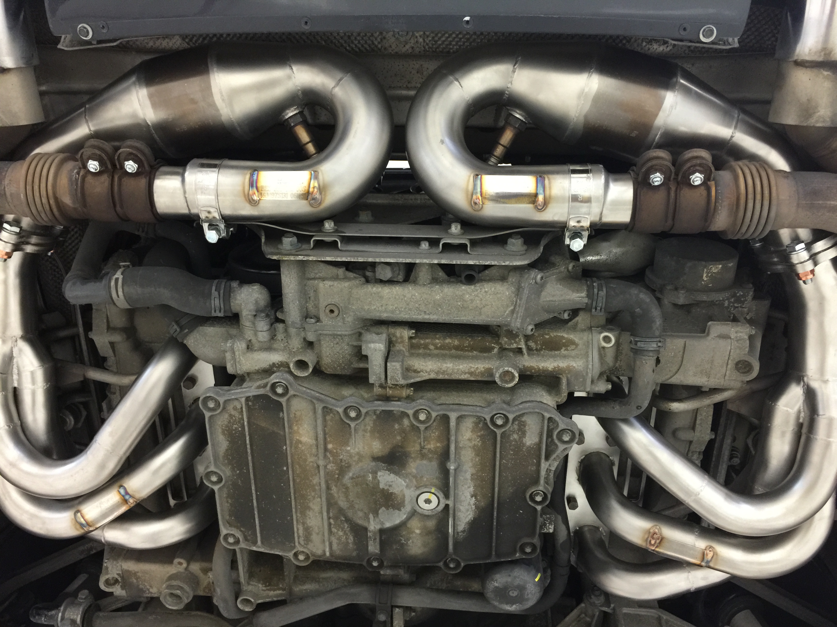 my setup Brombacher headers & 200 cells for Porsche Sport Exhaust.