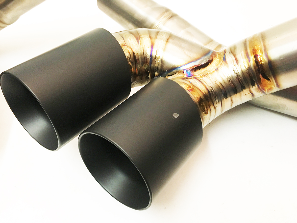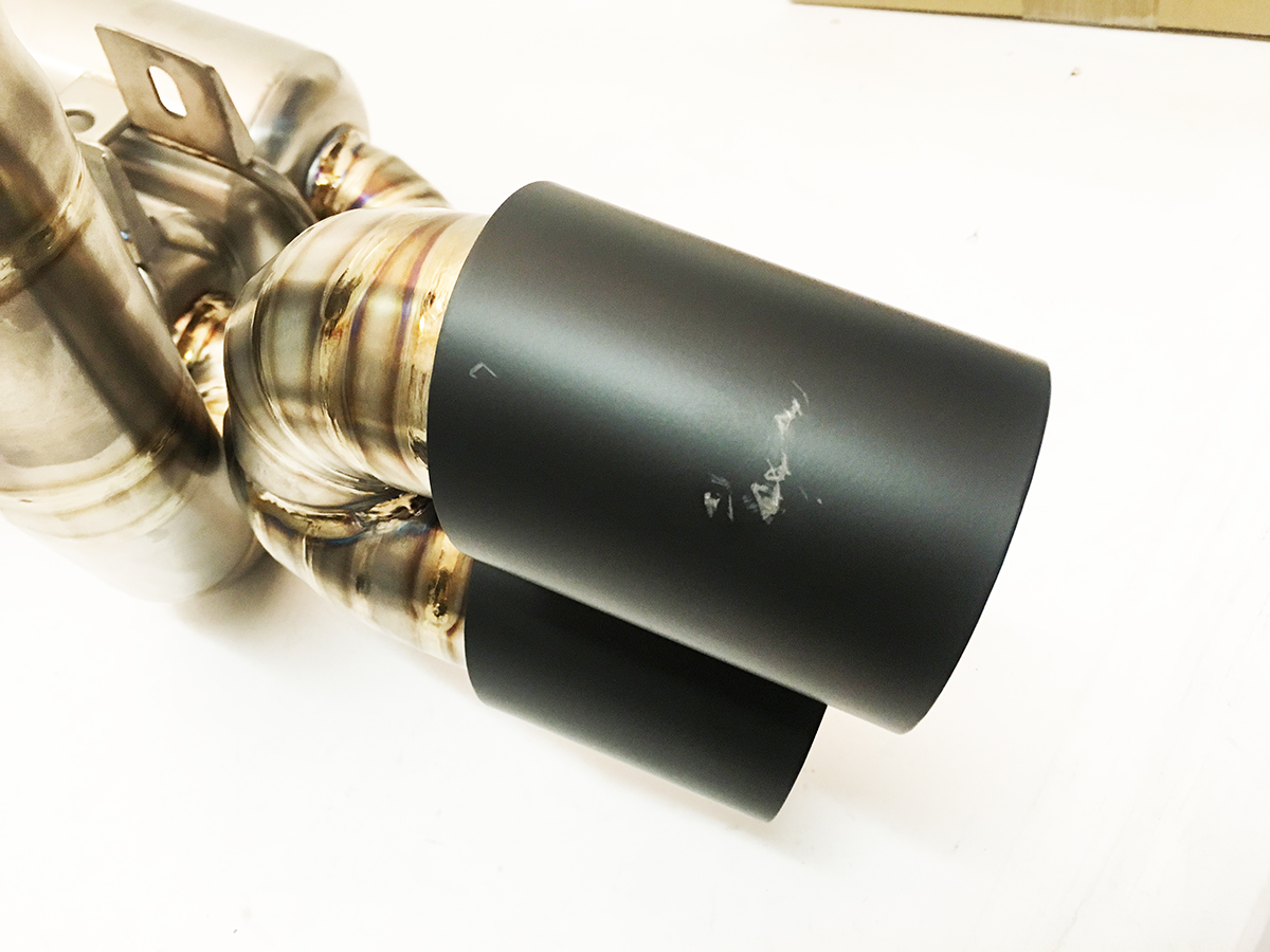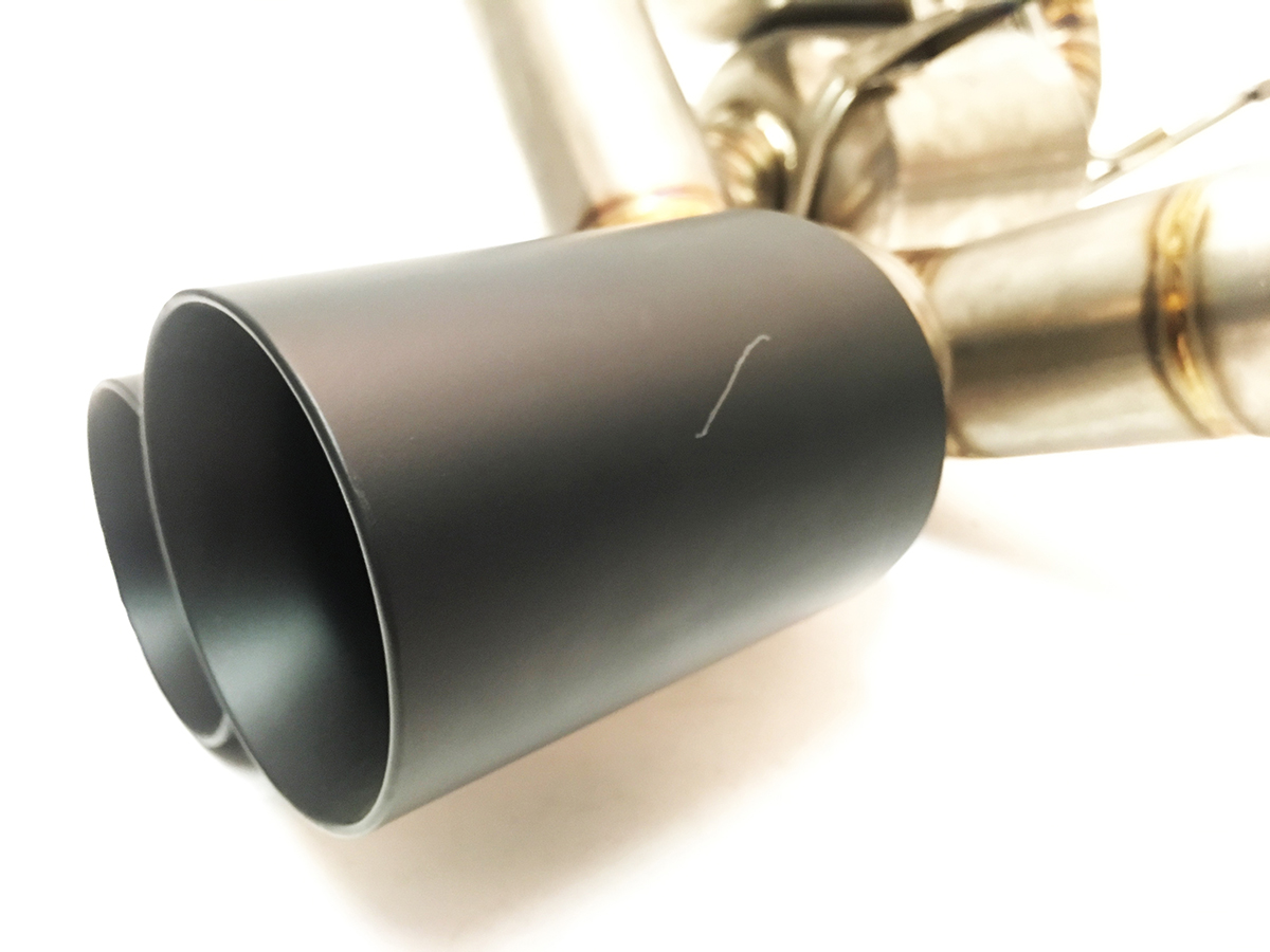 **This item is new, but sold with cosmetic blemishes. Minor Scratch on Drivers side inner exhaust tip. passenger side has minor rub marks and a smaller scratch on the outer tail pipe. Sold AS IS Clearance. Function of item is still perfect, just slight flaws in the exhaust tip coating. All damages are shown in the photos.**