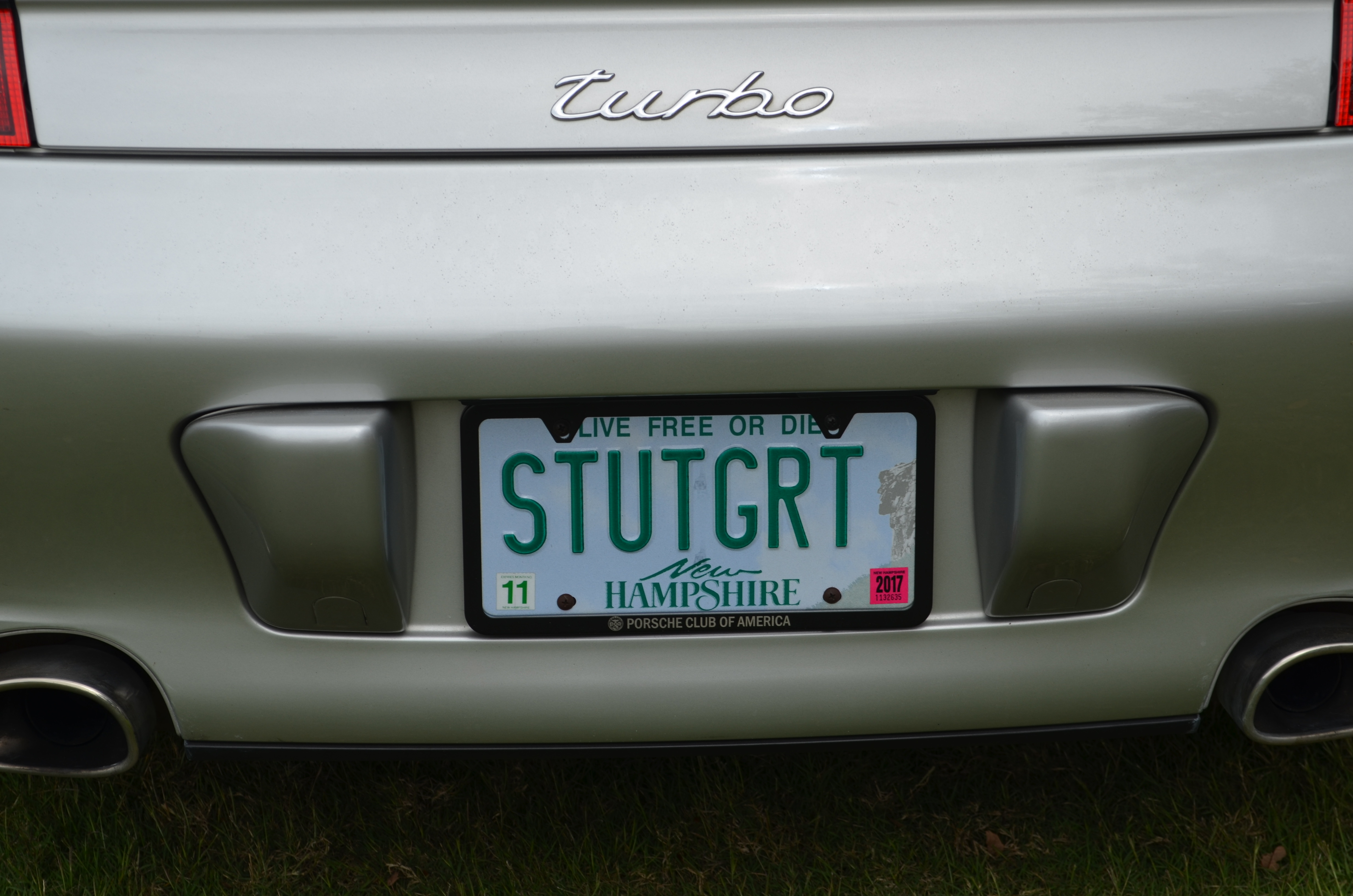 I always thought the idea of a personalized plate was cool. But kind of like a tattoo, I could never think of something cool enough that I would still love it years later. And I never had a car that was cool enough for a vanity plate. Then, about a year ago, I got my first Porsche. 2006 911 4S Cab. Tried to think of a cool plate that wasn't something lame like "1st 911". So I finally came up with one and just got them yesterday. I figured only true Porsche afficianadios would be able to figure it out. So you forum guys should nail this in a heartbeat (if you are over 40)...... What does it stand for?