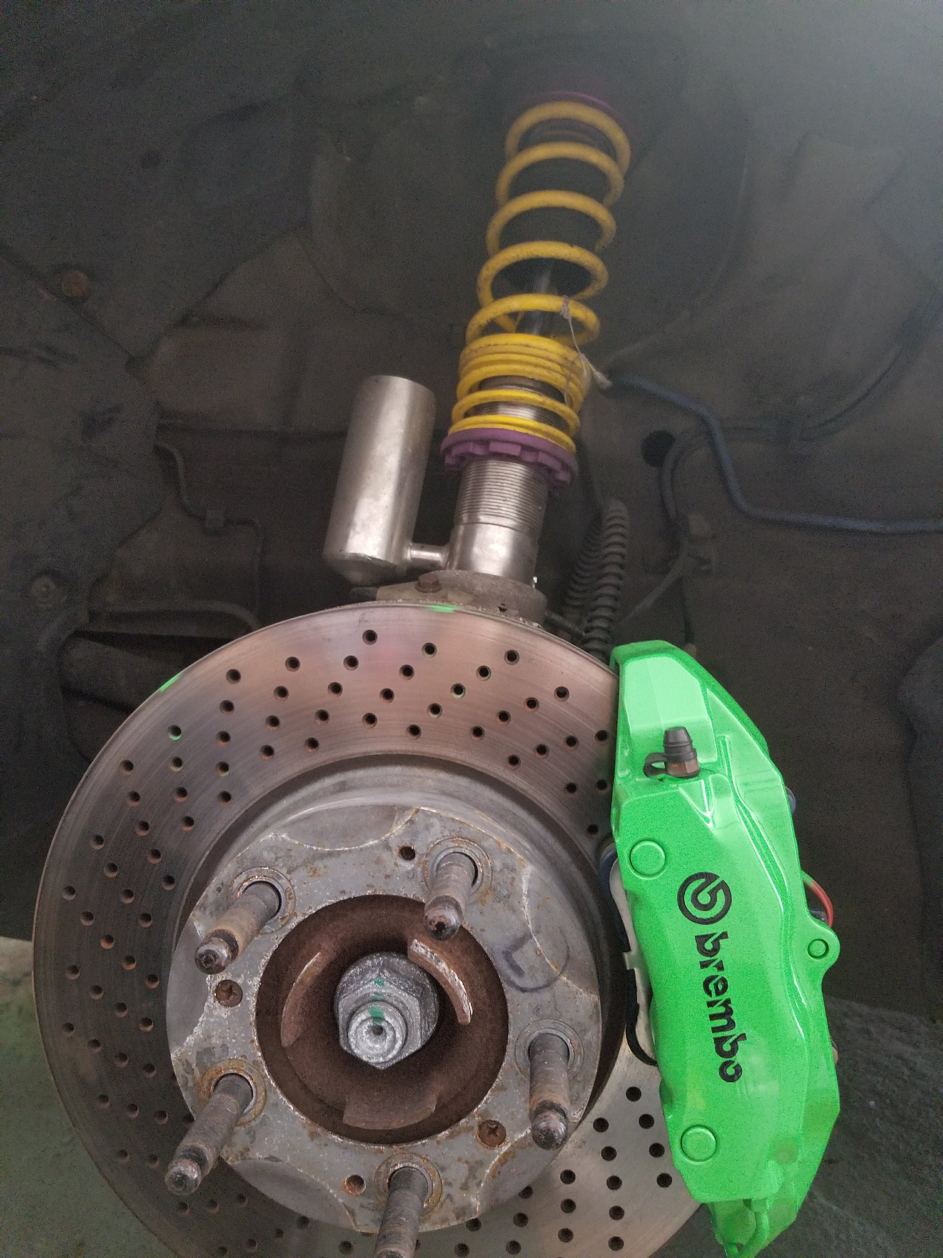 Finaly got around to doin my calipers!! Really wanted acid green but disnt want to wait for shipping so duplicolor engine enamel in grabber green will do