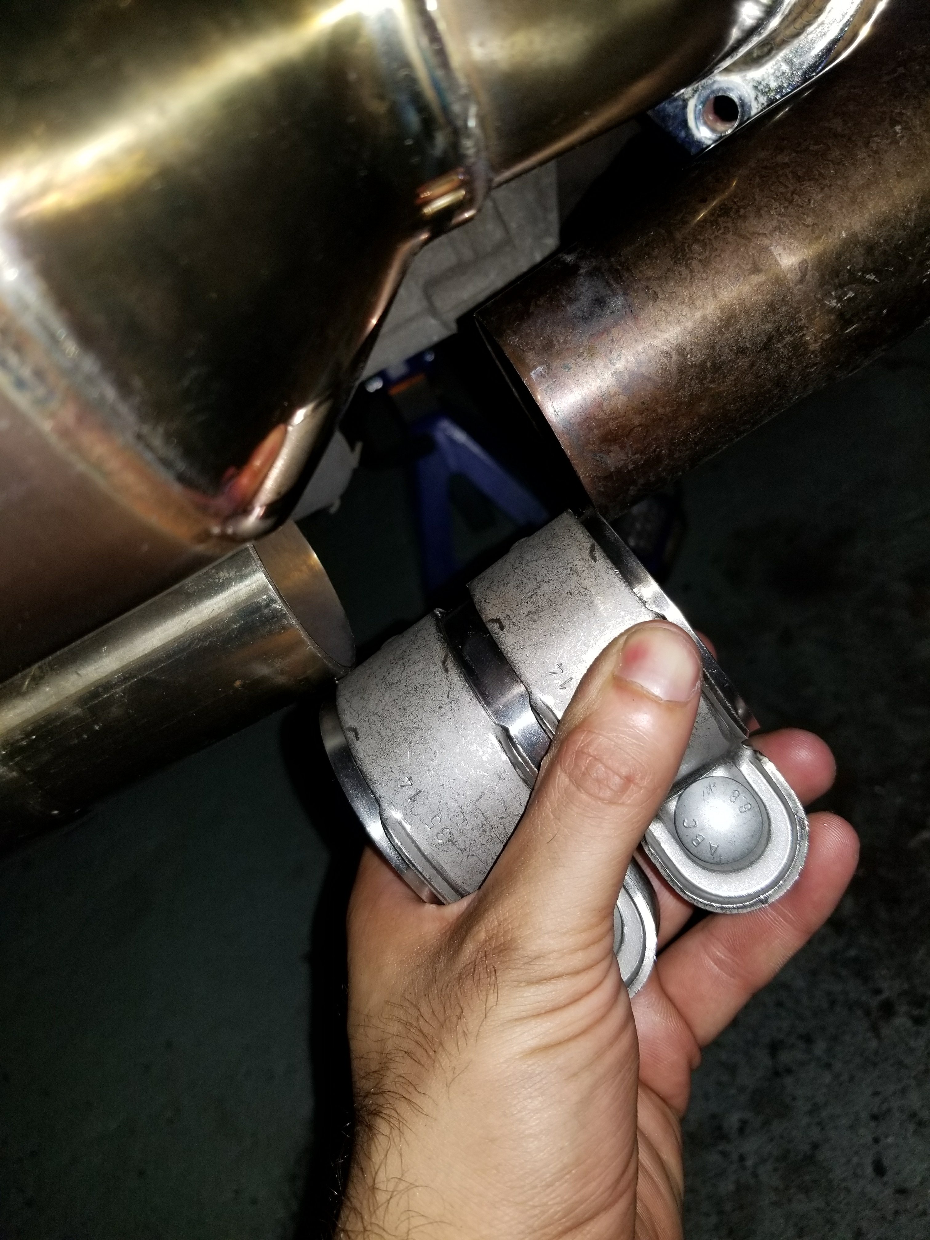 I had a similar situation and had Fabspeed send me the proper sized clamps for about $60 shipped. Yes...too much $$$ but I wanted it done the next day.