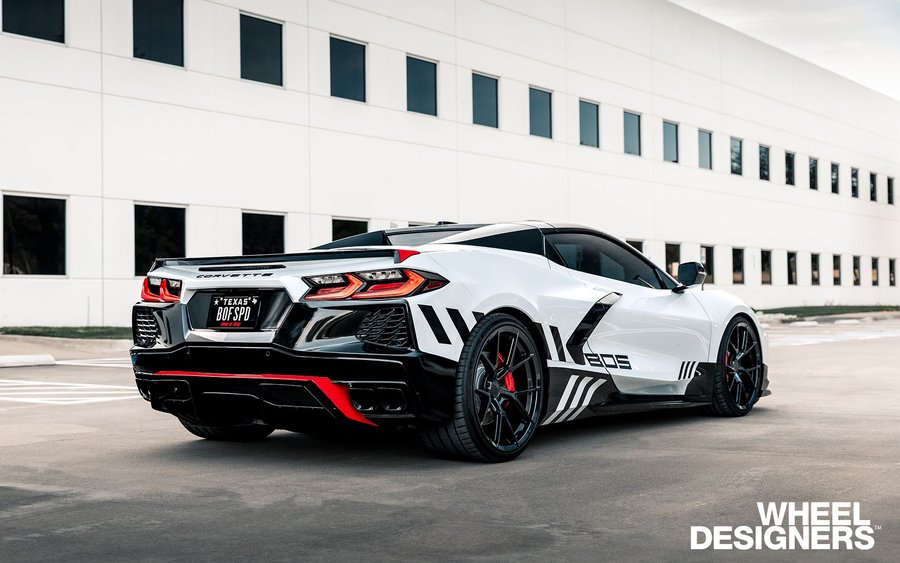 Wrapped and Lowered Corvette C8 on Forgedlite MC5 Photoshoot