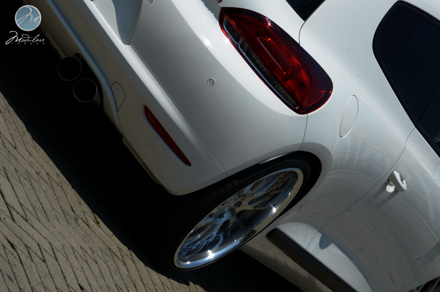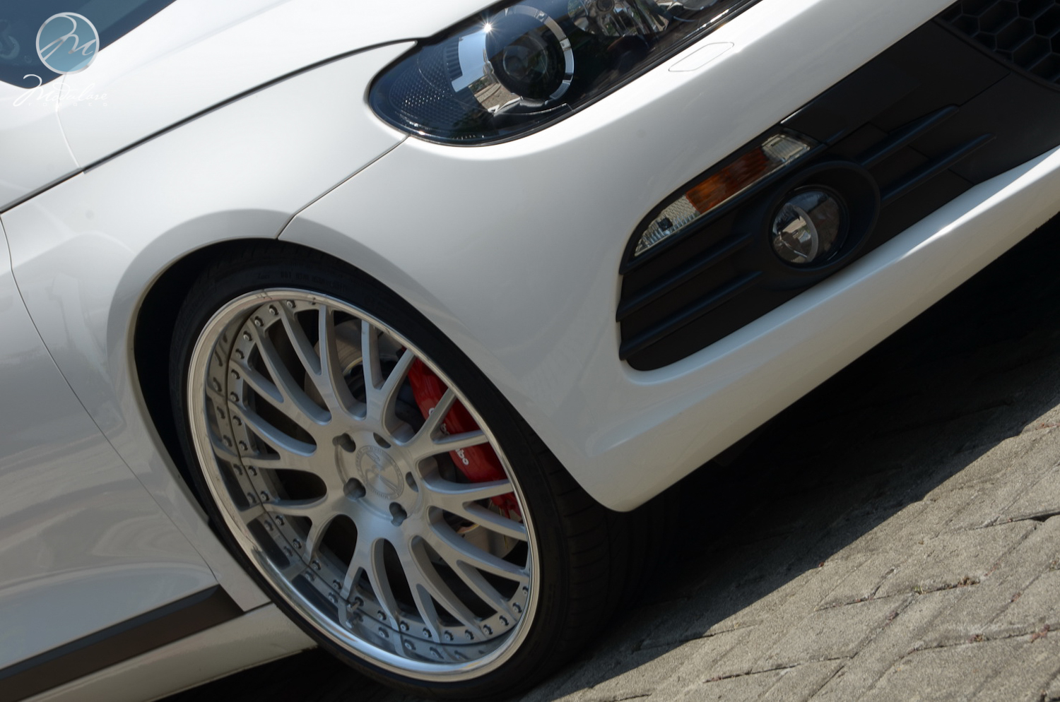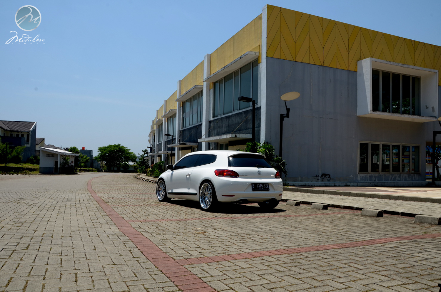 Thanks to our friends at Antelope Ban in Bogor, Indonesia, for setting us this 2012 VW Scirocco with a set of our 20” Modulare M24 3-piece wheels. The wheels measure 20x8.5 front and 20x10 rear, and are finished in the brushed aluminum finish with the optional etched aluminum centercaps. The car also features sport suspension from KW and a sport exhaust from Eisenmann.