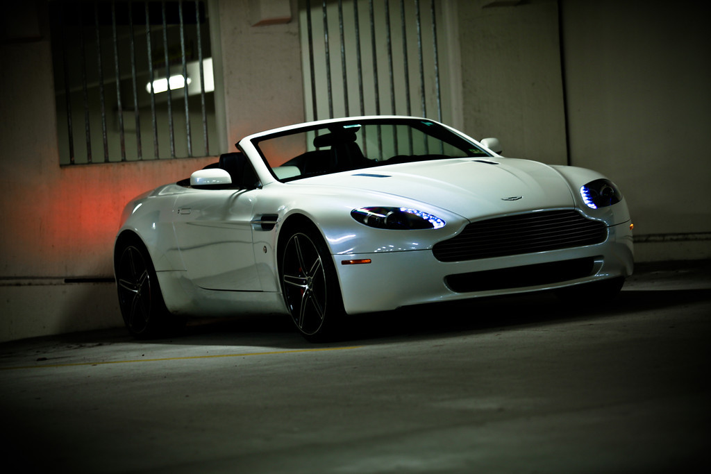 Howdy all! I guess I can make this my intro post. I bought myself an 08 V8 Vantage Roadster for my birthday/Christmas. I'd wanted one since high school, and was finally able to make it happen! It's Stratus White with a black top and solid black interior. Here are some quickie photos I took a few days after I got it: