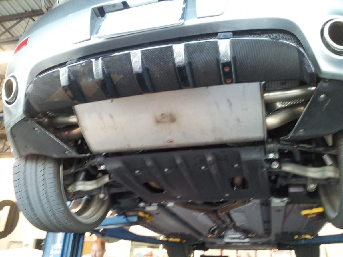 Hi Guys. The other day the front underbody plate separated from the diffuser without warning on the road. Since it was late friday afternoon, the only place open with a lift was Pep Boys. Turns out a screw or two went missing and then with a little bit of speed, ripped the rest out of their sockets. Was fixed super quick and easy thank god. It was, however the first time I had the car on a lift and I noticed the exhaust system looks to be stainless steel. Im not sure if it comes like this from the factory or not. I took a few pictures and maybe you guys can tell me if this is OEM, or if not, who do you think it comes from. Thanks again!