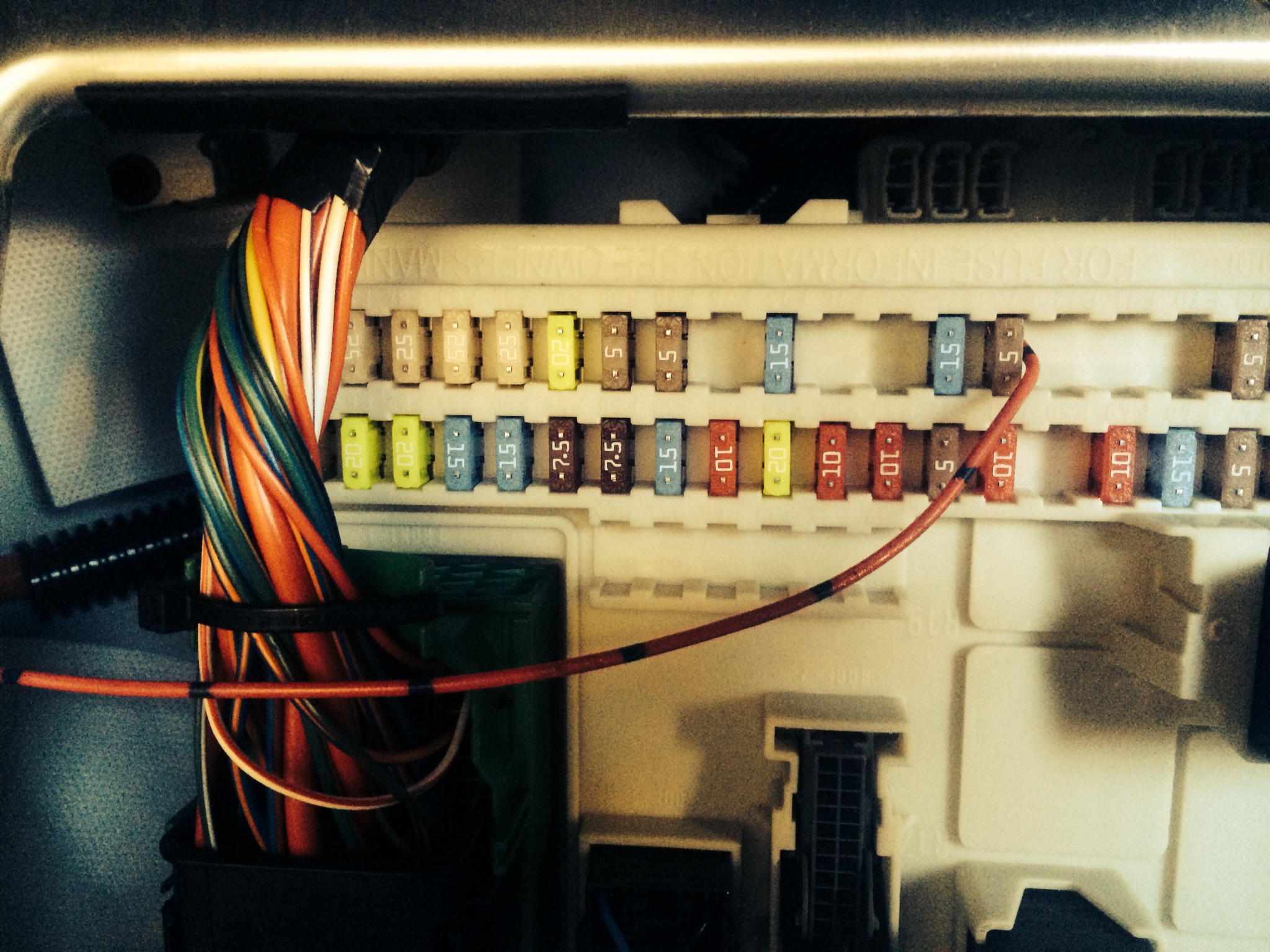 Also I have attached a pic of the passenger foot well fuse box . Check out that funky red/black wire which is just tucked into the side of that fuse ? that cant be factory ? I sure hope not . Ant ideas Vantage gurus.
