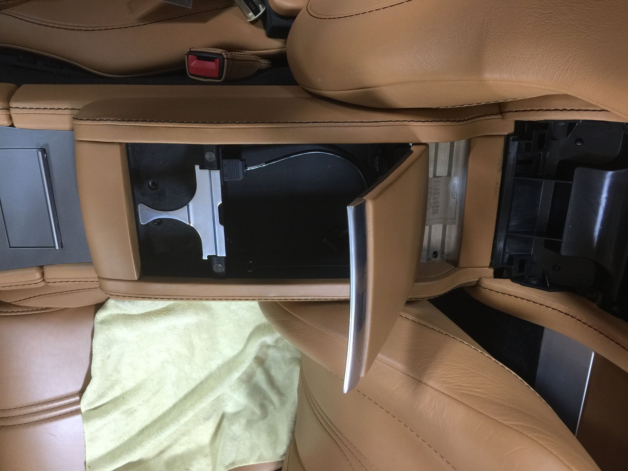 So far I have discovered the two screws hidden under the cup holders and the two under the leather piece behind the arm rest. Still nothing moves. Anyone know what the next step is?