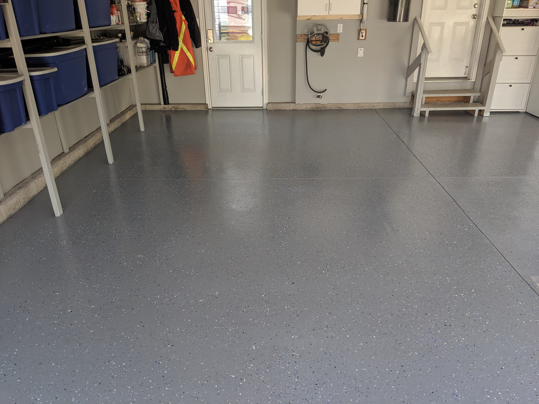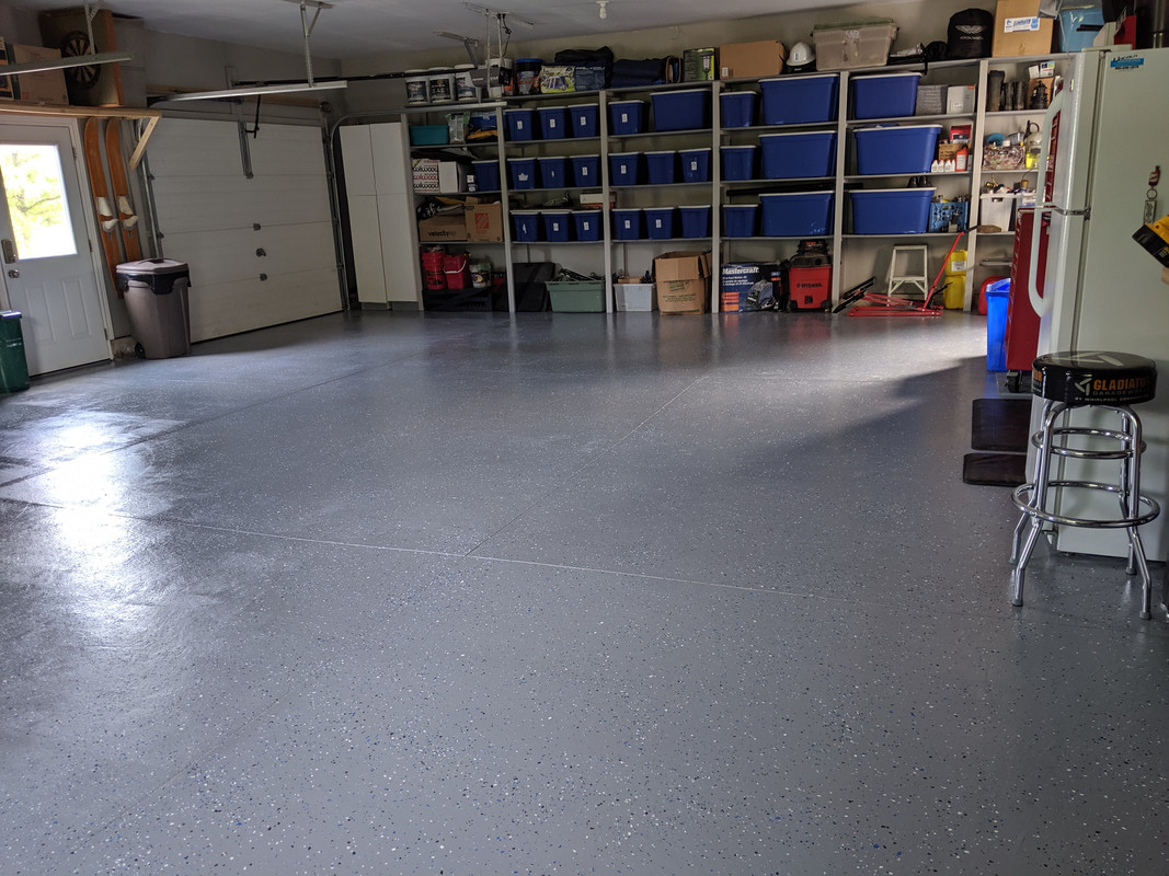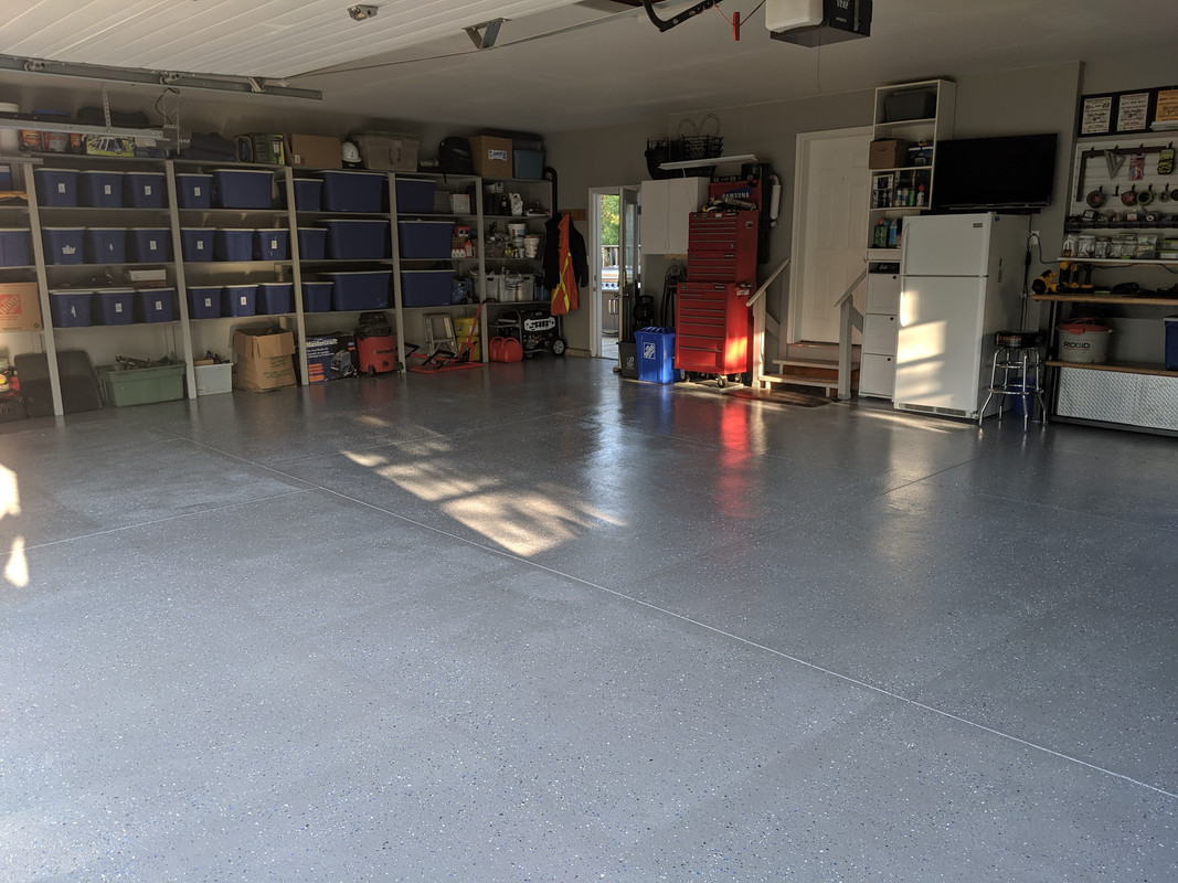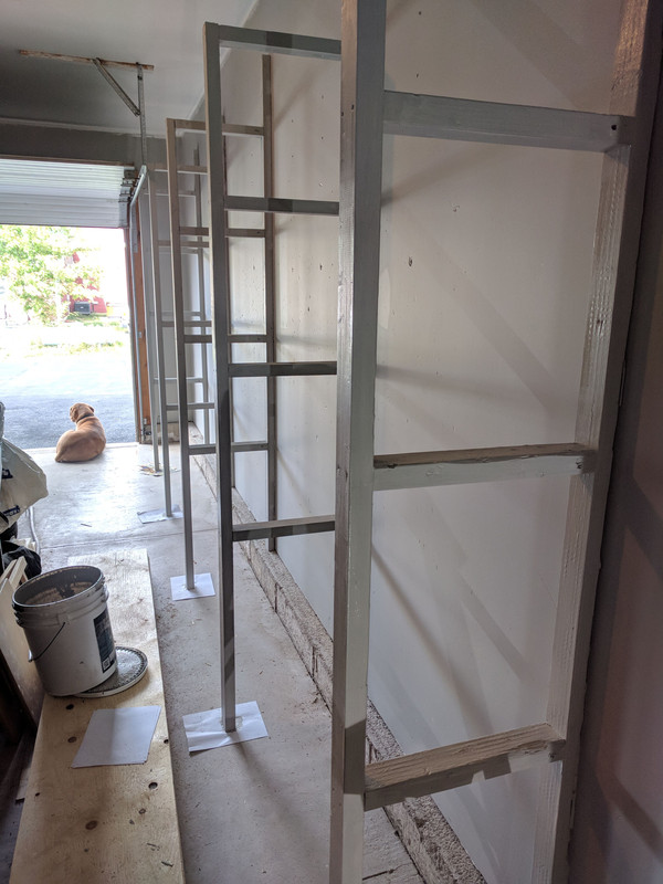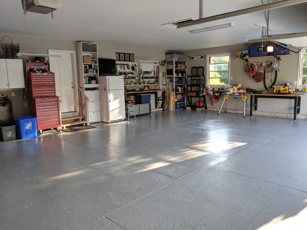 (painted ceiling, walls, epoxy floor, built shelves and loft, setup workshop area etc)