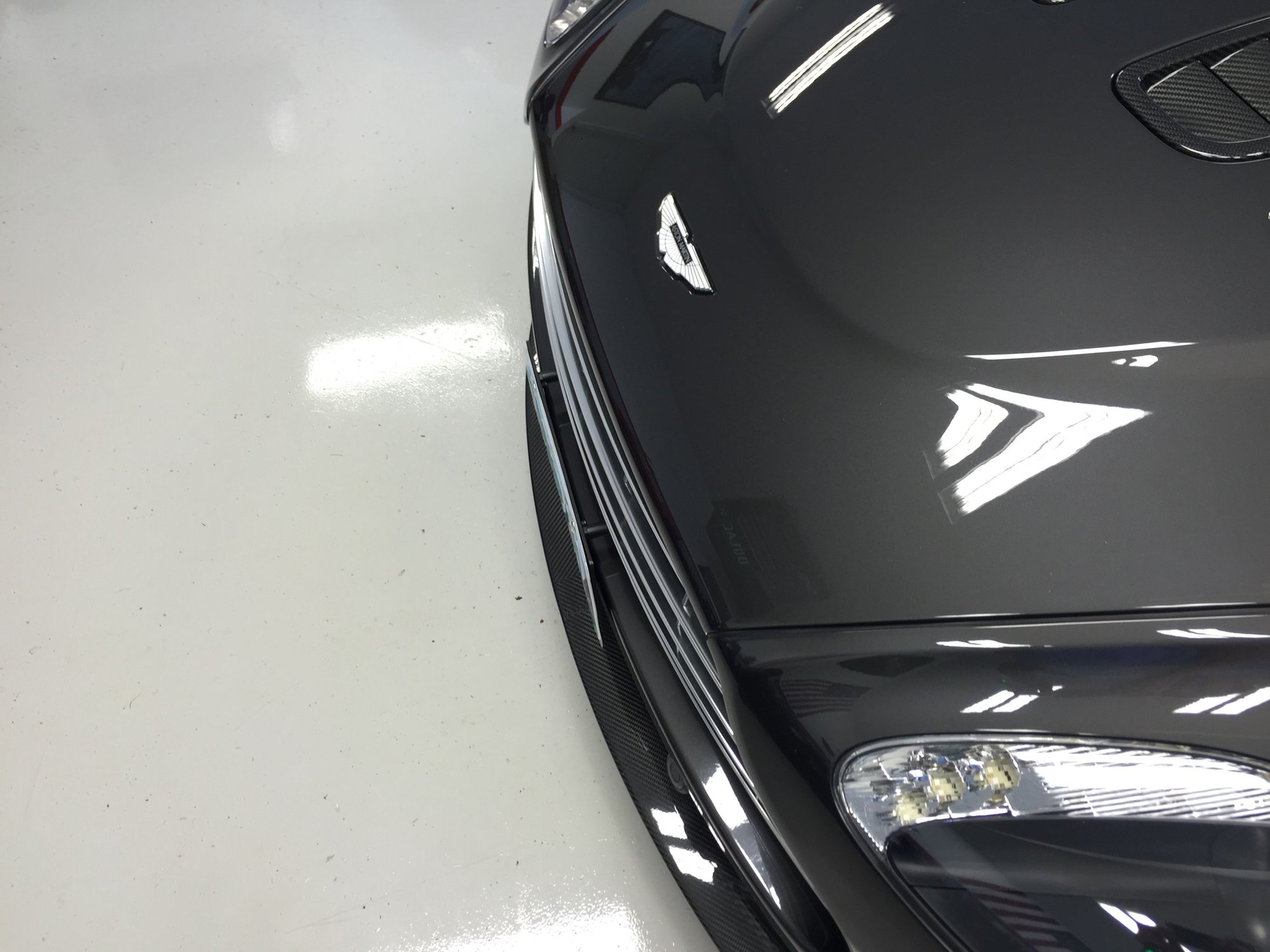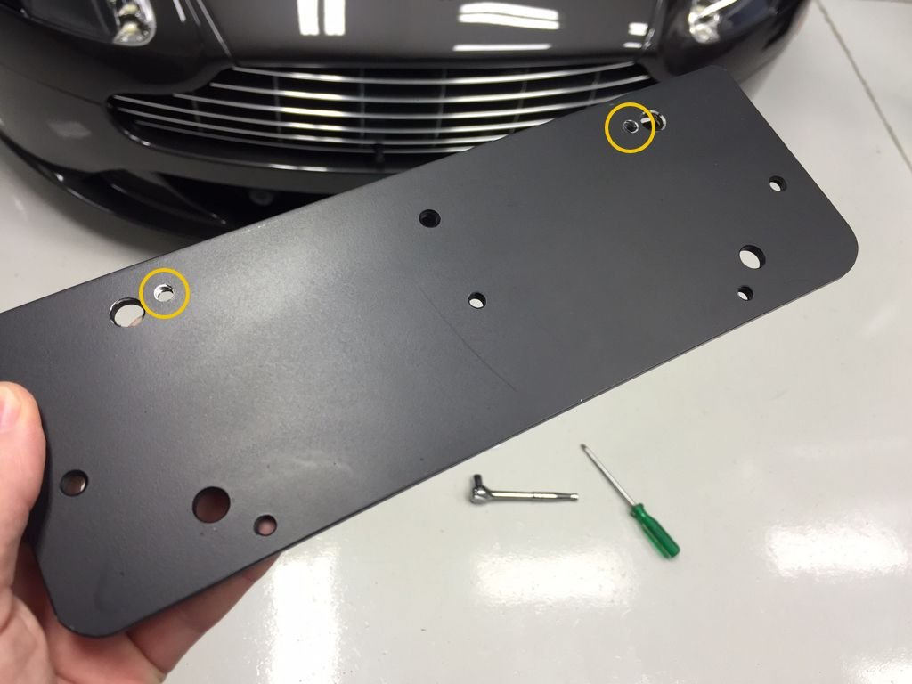 Since I'm in a state that requires a front plate, and I don't need anymore excuses to get pulled over, I decided to fiddle with mounting my front plate. I purchased the NA front plate kit from AstonMartinCarParts.com; all said and done, it was like $200 shipped for the all front plate mounting parts. After getting the parts, I decided the plastic OEM mount is WAY too bulky and obtrusive. Having a front plate on the car obtrusive enough--the last thing the front-end needs is a bunch of BEEFY plastic.