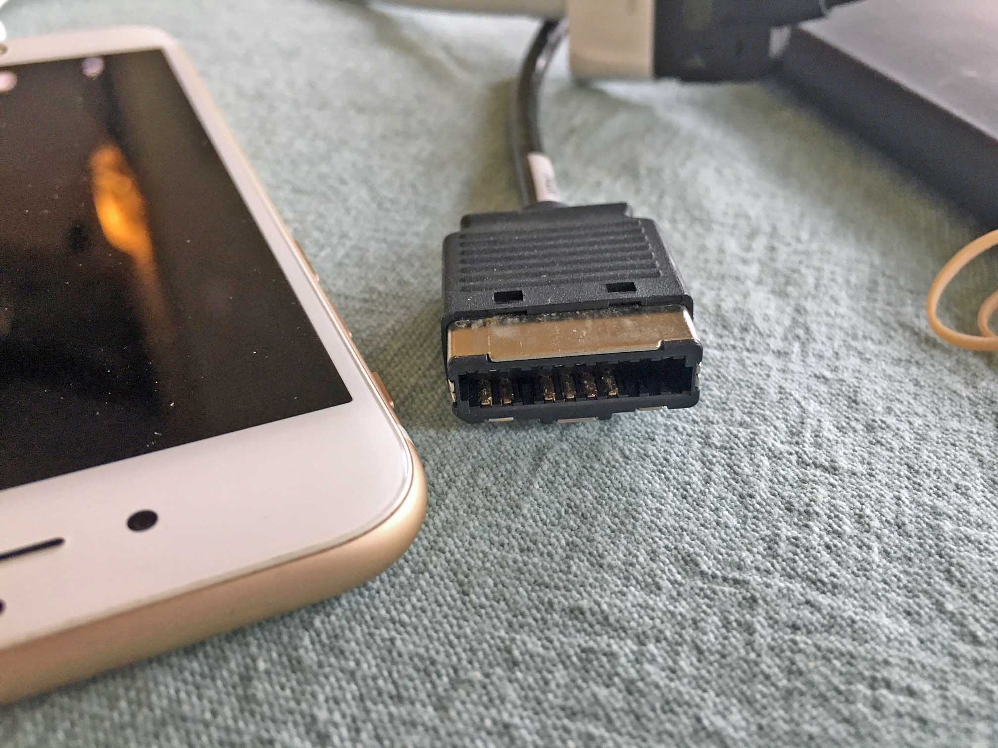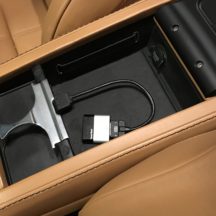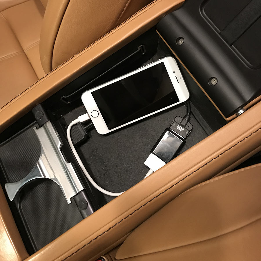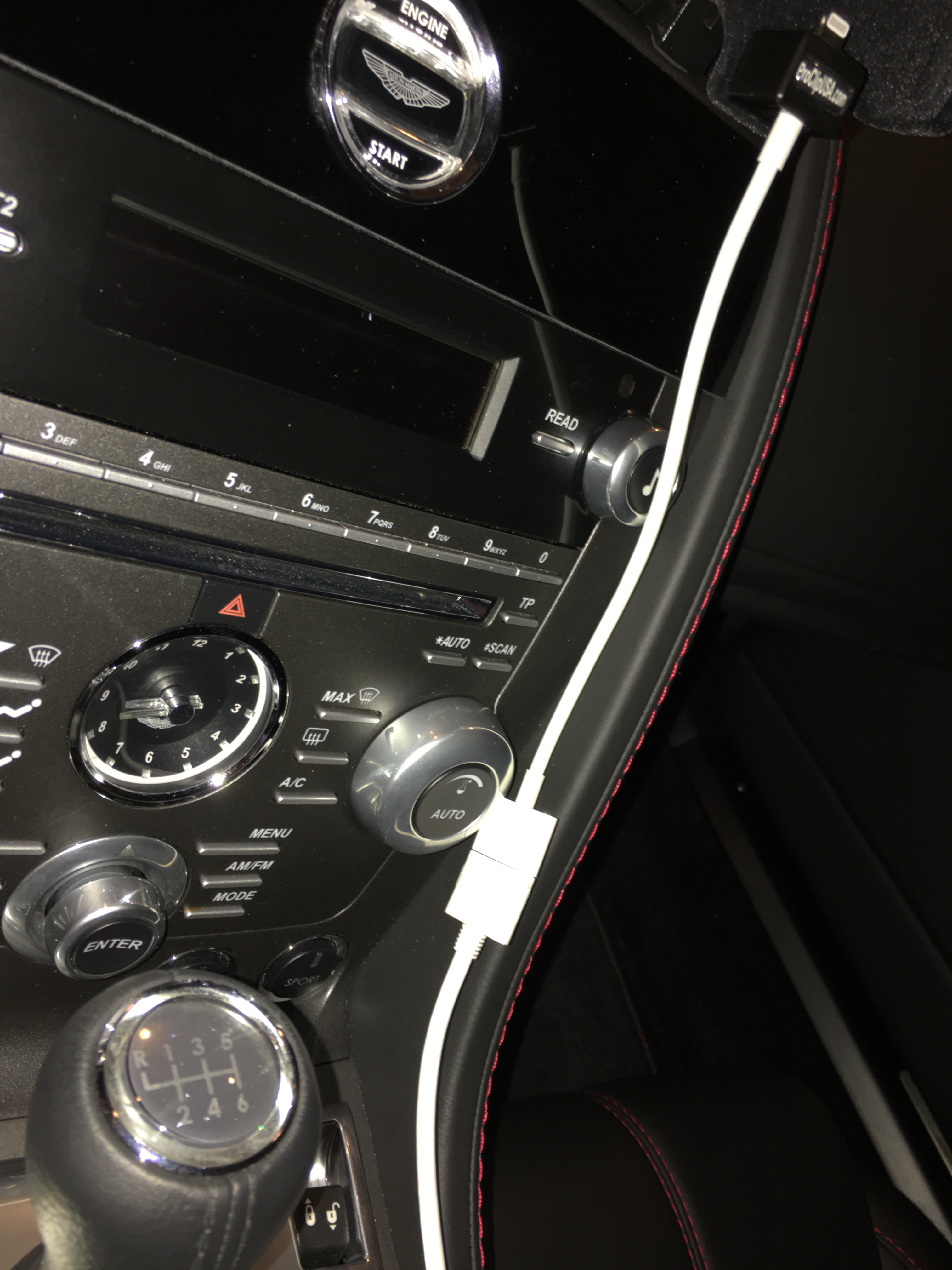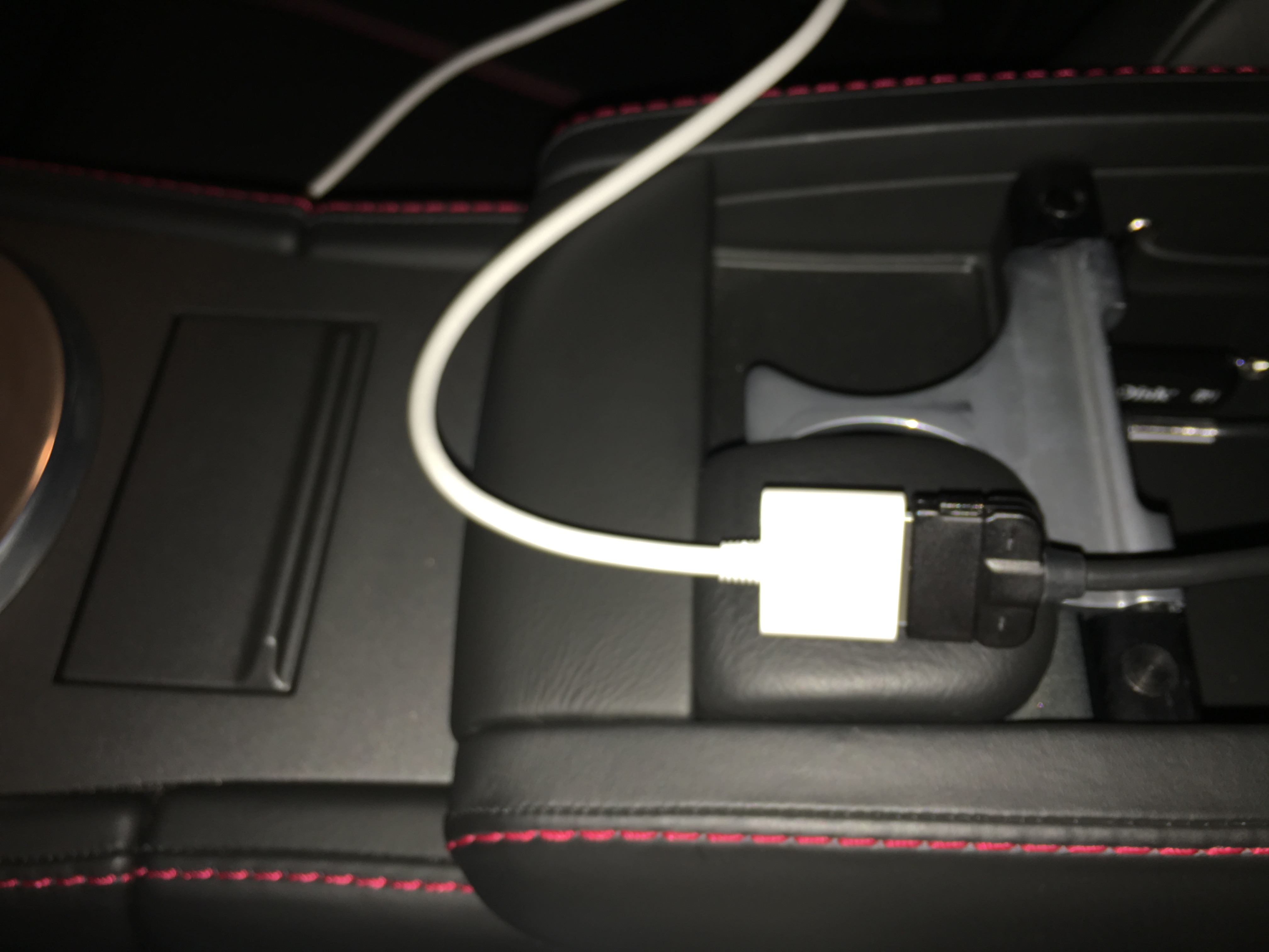But if you insist on wanting to have music play and charging at the same time via a physical cable, it's doable. However, the ONLY way to achieve that is by using Apple's OEM lightening-to-30pin cable. Since that cable only comes in 20cm length, there is no way to hide that bulky and ugly 30pin connector but to leave it exposed. Cosmetically, this is not a very pleasing way for any installation. It just looks out of place in an Aston, IMHO.