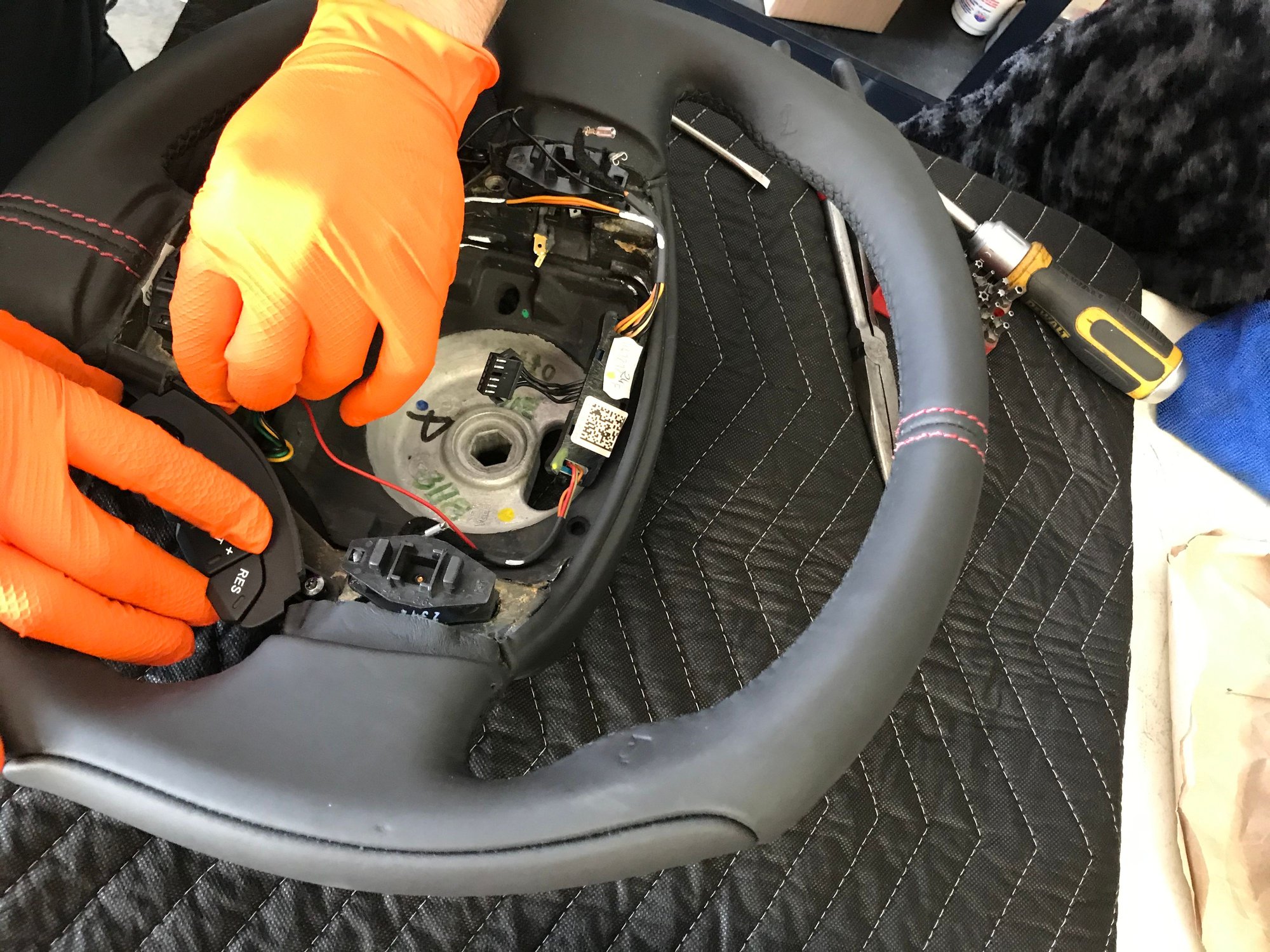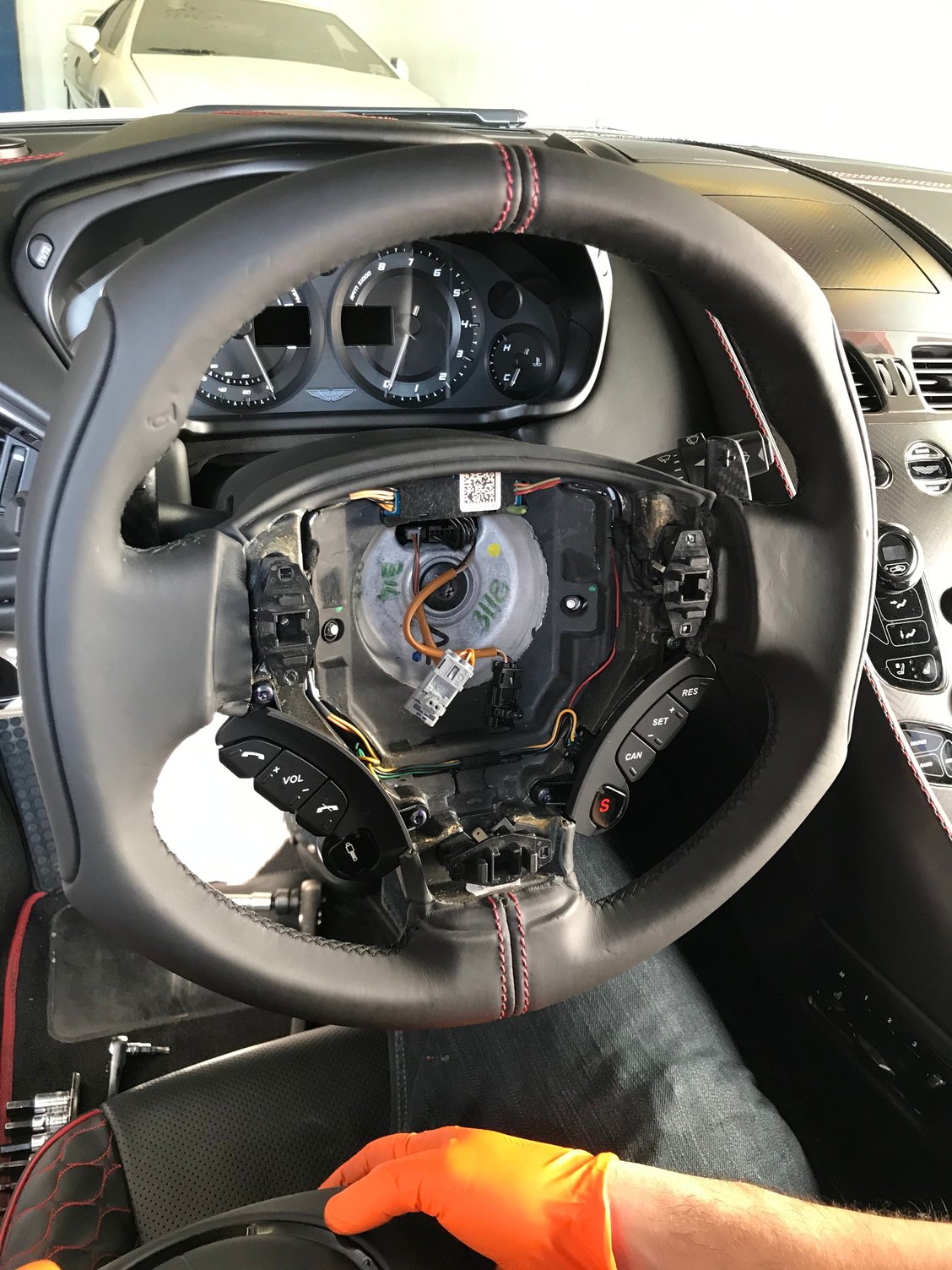All right! Installed the One77 steering wheel which I got from astonmartinbits.com. My buddy has a shop and just had him do it...took about an hour. One main difference is the location of the horn buttons, so there is a slight difference but overall the same.