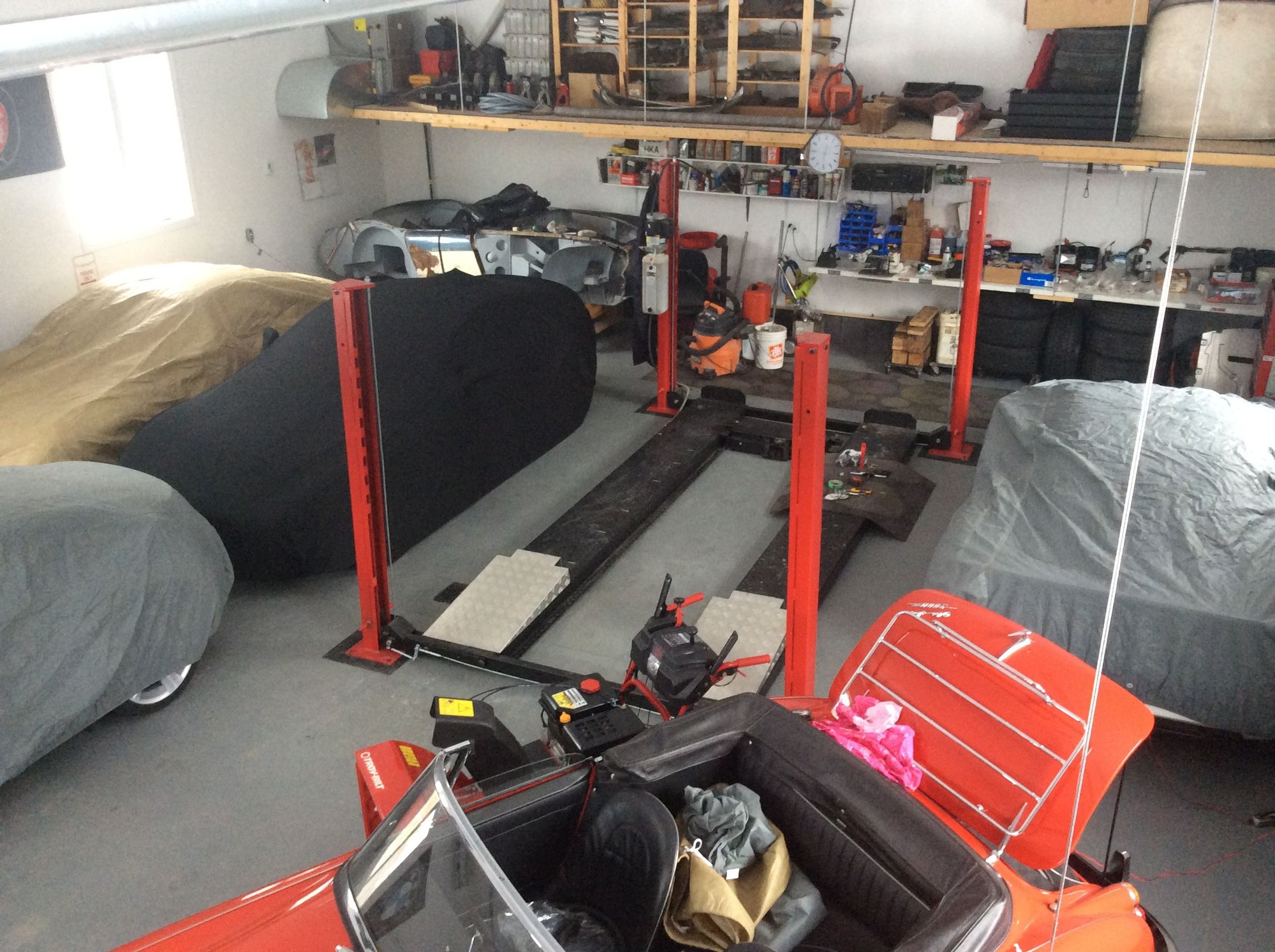 its there tucked away looking sad in the corner , on the shelf top right is the original factory hardtop that was sold with the car in 62 .