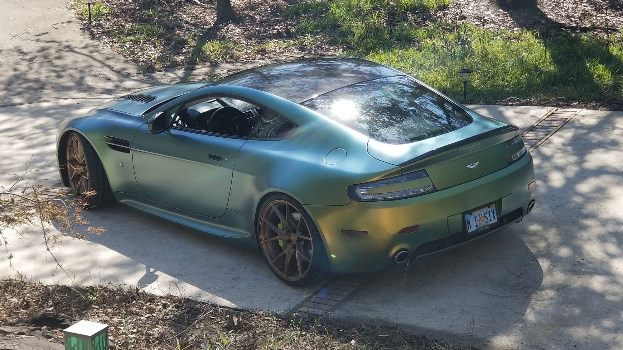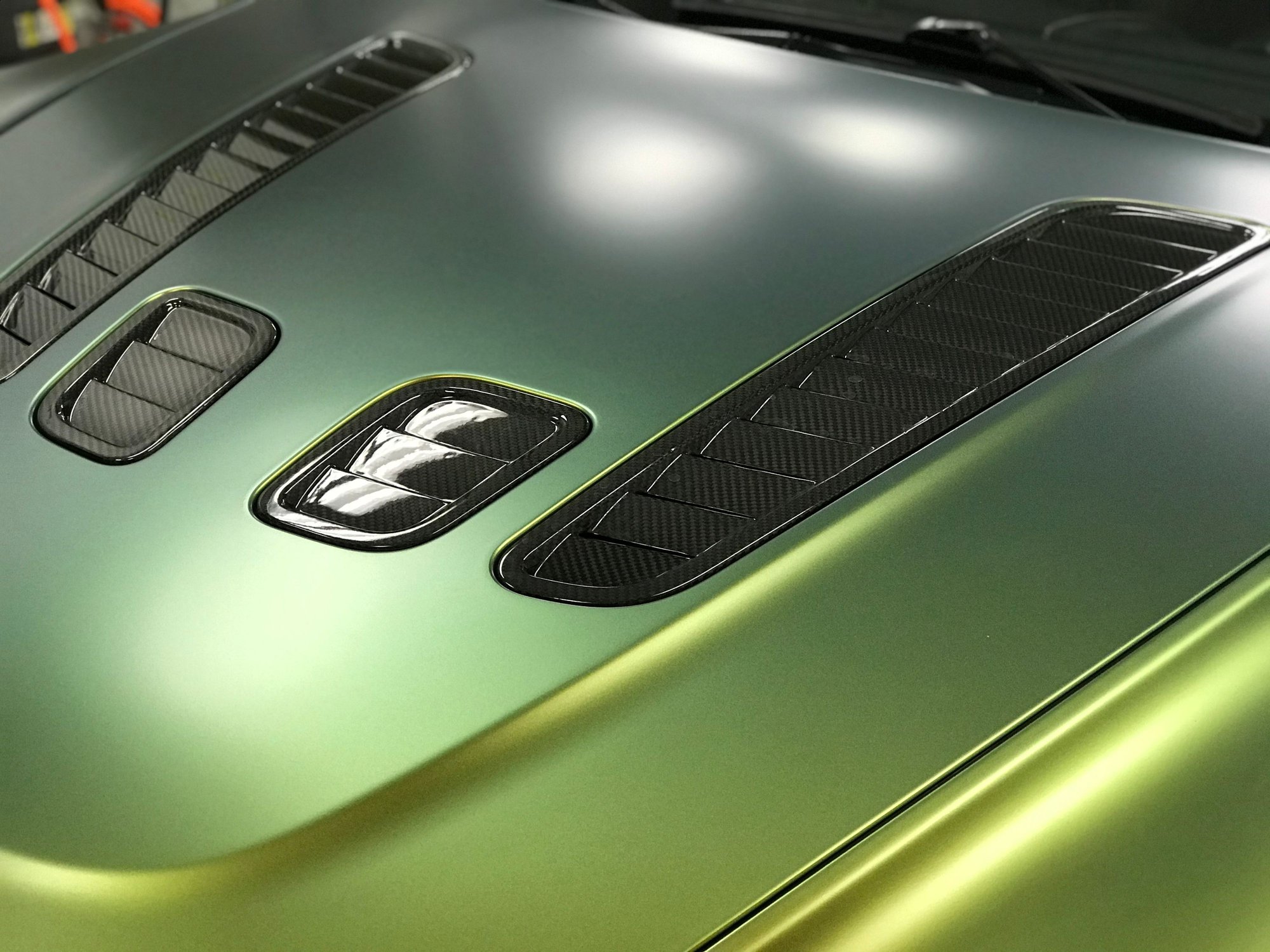 Tried to find a balance between refined and wild. A little flashy yet still a gentleman's car. Color shift satin. British racing green shifts to green/gold based on direction and sunlight. Really highlights her curves.