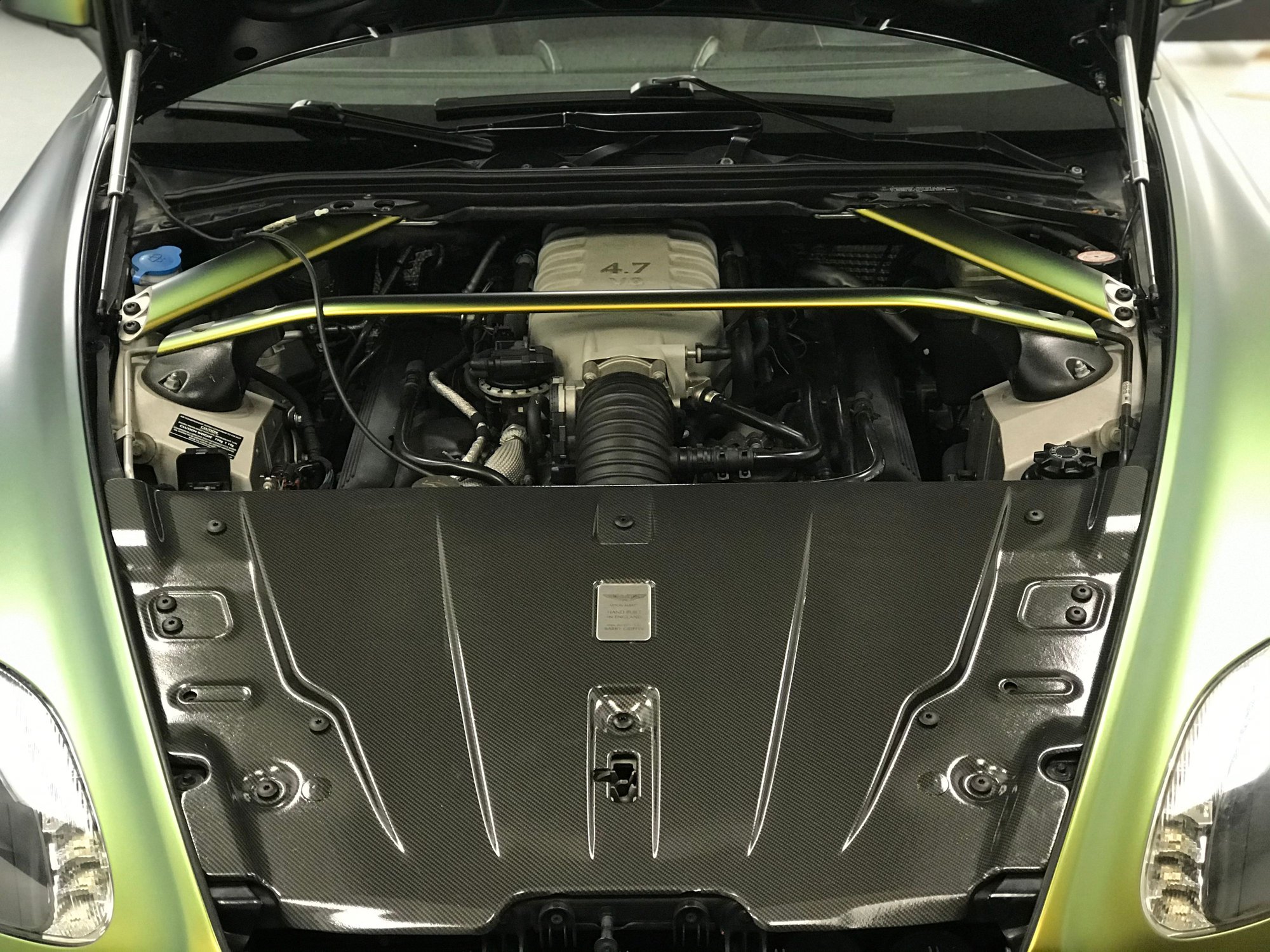 Yes, calipers are lime green with black Aston logo.